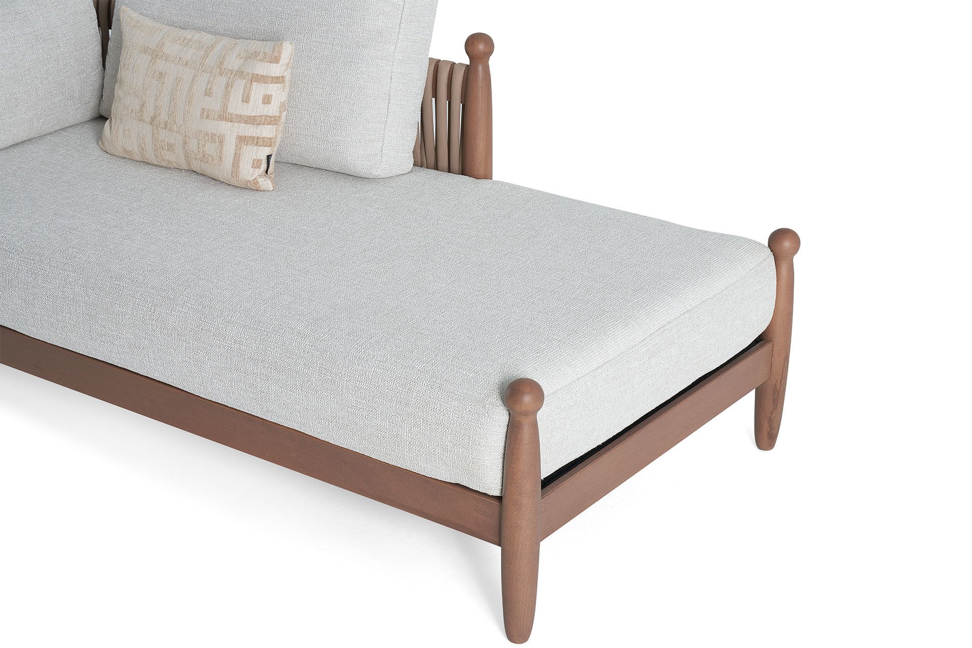 Taht Daybed, Mardin’in sıcak yaz gecelerinde teraslarda uyuma kültüründen ilham aldı. Kol ve sırttaki örgü el işçiliği, ahşap iskeletiyle birleşerek Mezopotamya’nın zengin mirasını modern tasarımla buluşturur. Her detay, yaşam alanlarınıza huzur ve zarafet katar.Ürün Tanımı: Taht Daybed. İskelet Ve Ayak Malzemesi: Ayaklar coastral hareli meşe doğal ahşap kaplama malzemeden oluşmaktadır. Kumaş Özelliği: Keten kumaş kullanılmıştır. Oturum Minderi Malzemesi: 32 Dns Flexi sünger kullanılmıştır. Oturum Yumuşaklığı: Orta yumuşak sünger kullanılmıştır. Sırt Minderi Malzemesi: Silikon ultra yumuşak sırt dolgusu kullanılmıştır. Bakım: Kolay çıkabilen lekeler için sabunlu su kullanılmalı, temizlerken kimyasal madde tercih edilmemelidir. Çıkmayan lekelerde kuru temizlemeden yardım alınmalıdır. Genişlik: 190 cm Derinlik: 90 cm Yükseklik: 78 cm