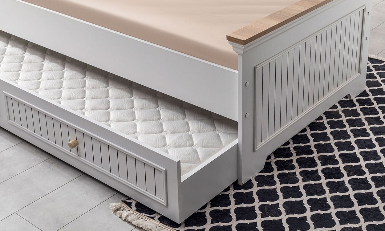 Ürün içeriği; 100*200 cm Başlıklı Yavrulu Karyola, 3 Kapılı Dolap ve komodinden oluşmaktadır.