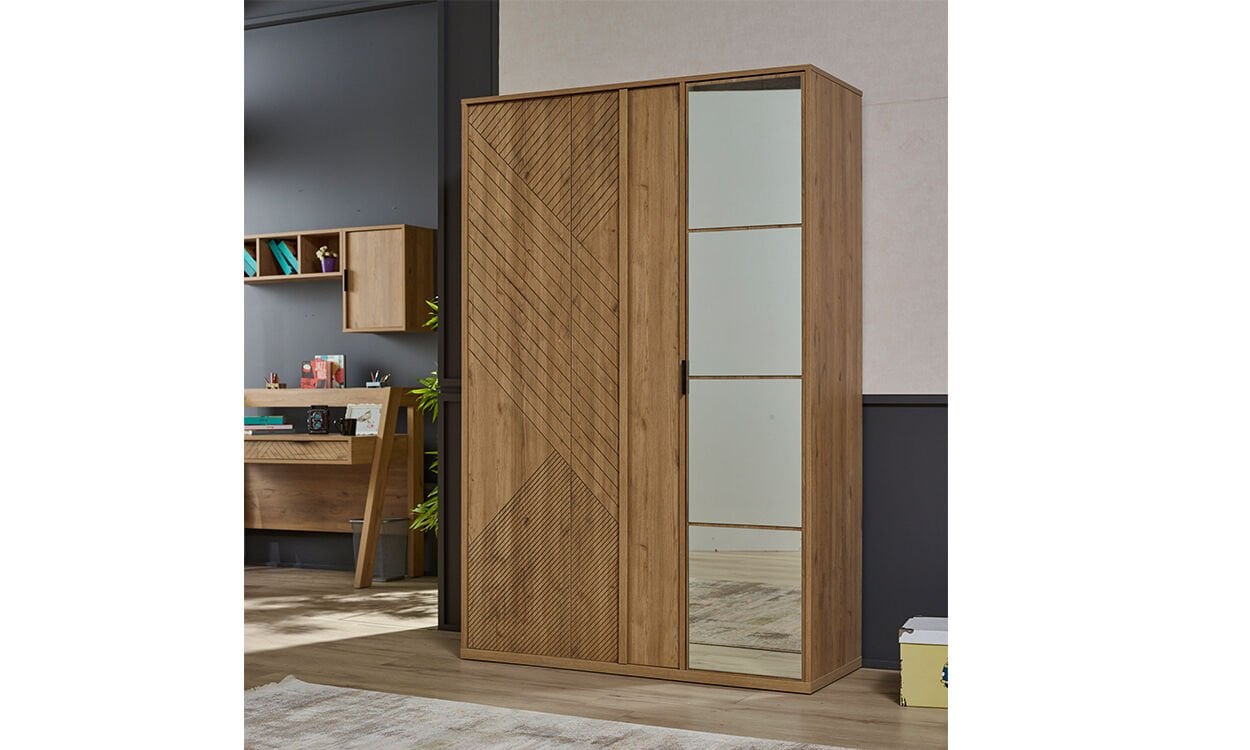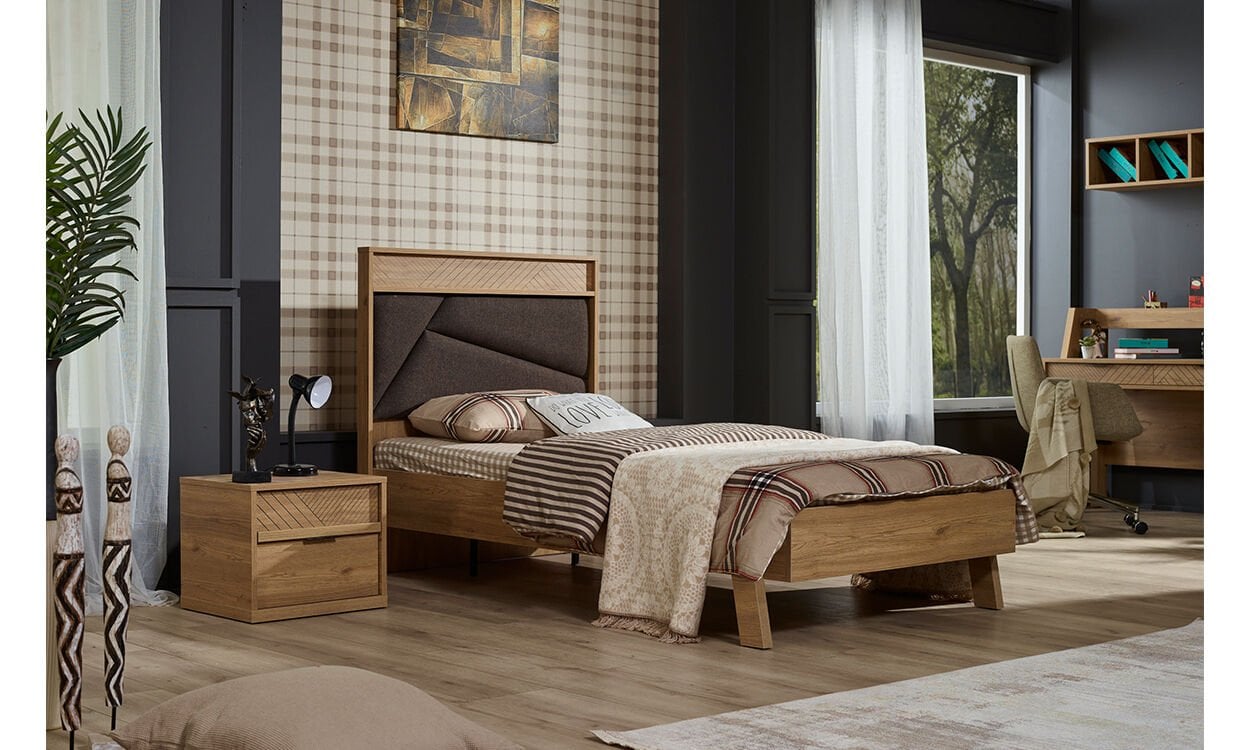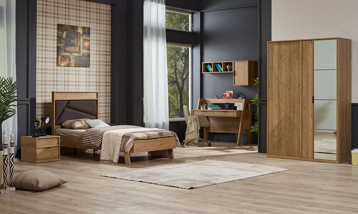 Ürünümüz 3 Kapılı Dolap, Komodin ve 100*200 cm Başlıklı Karyoladır.