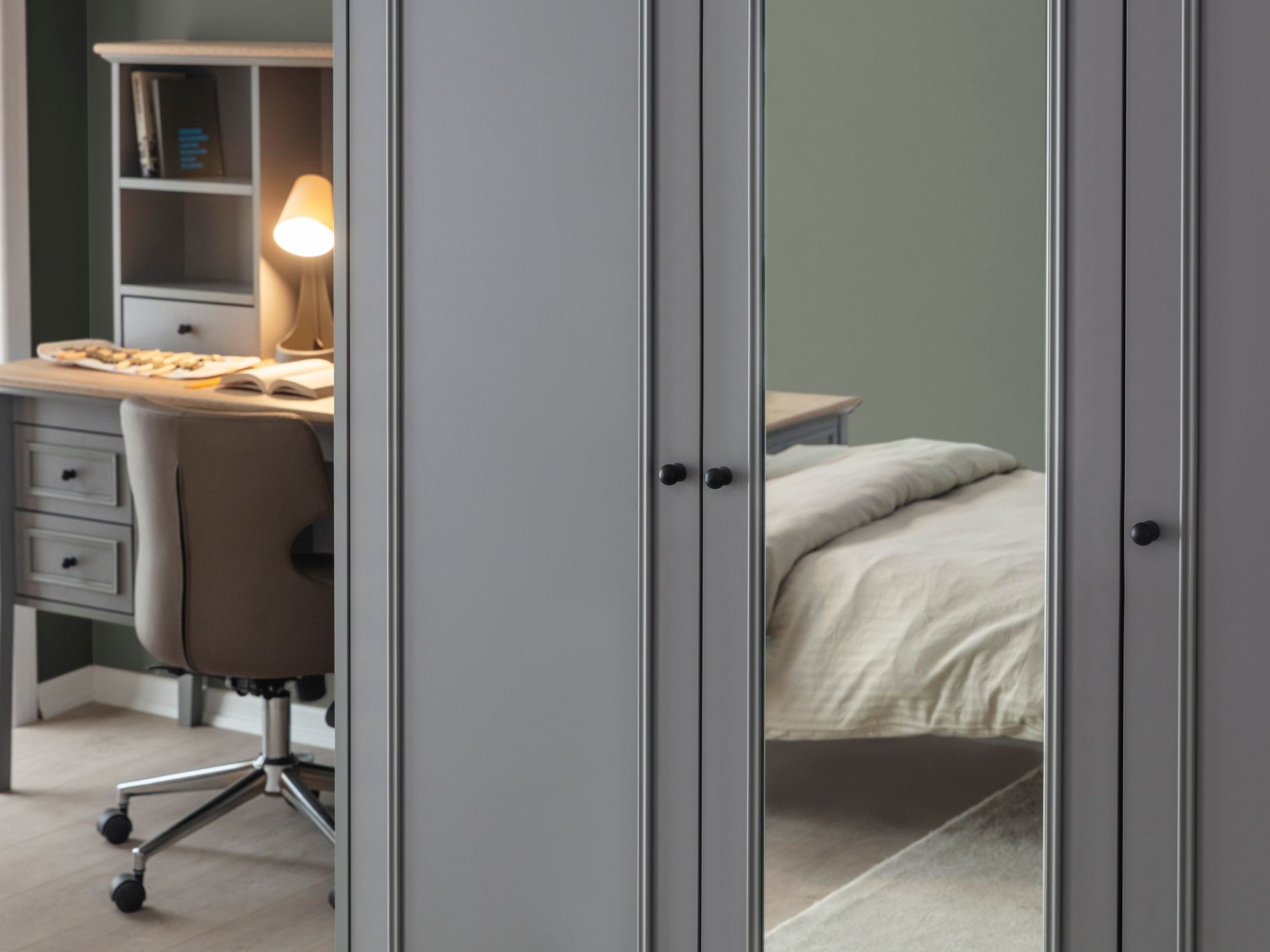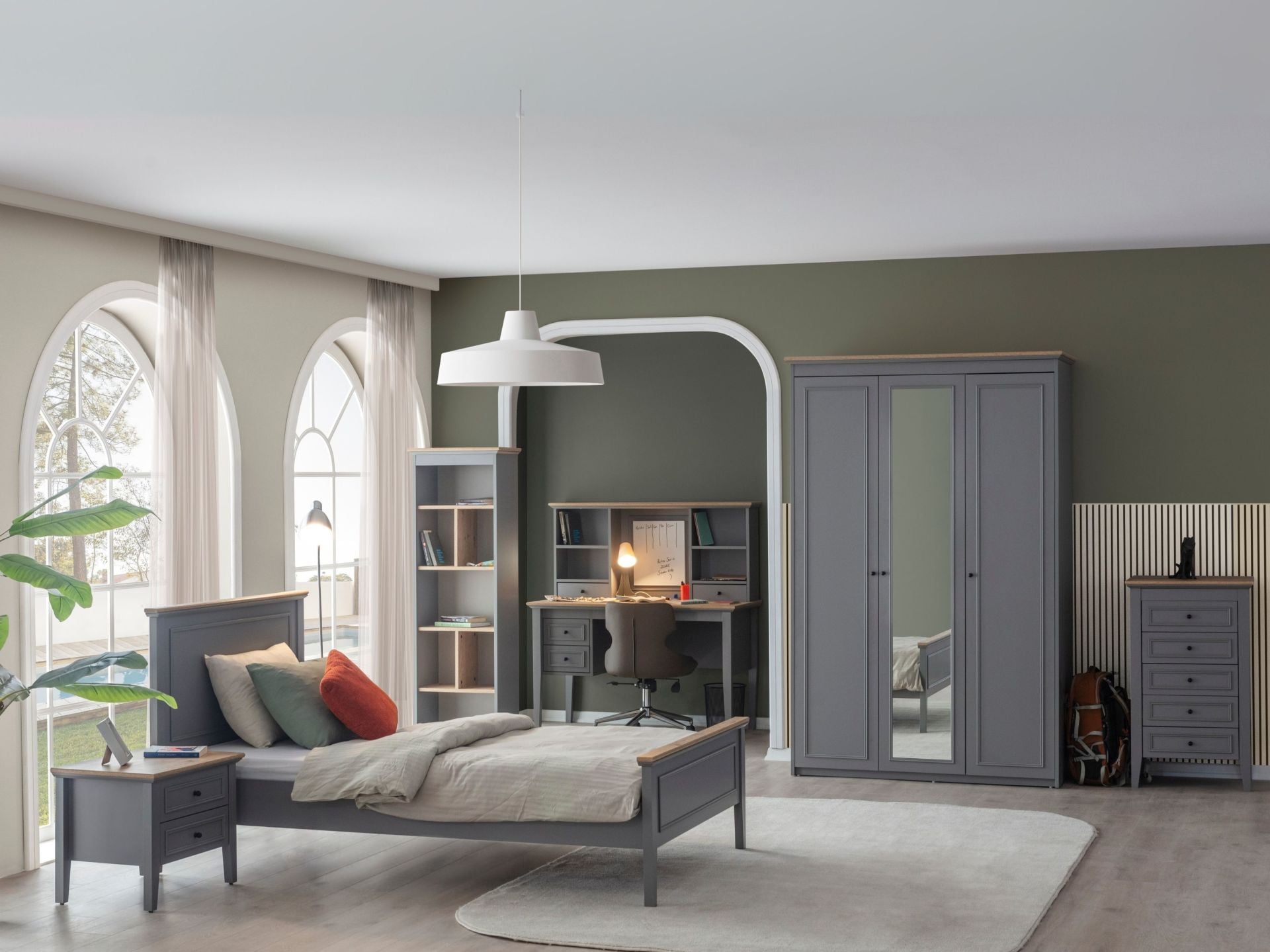 Dolap 3 kapaklı raflı askılıklı dolaptan oluşmaktadır. Görünür ön yüzler MDF malzemedir. Harici 1. Sınıf yonga levhadan üretilmektedir. Kulplar metal malzemeden üretilmiştir. Kapaklarda yavaşlatıcı menteşe kullanılmıştır. Kapak ön yüzlerde CNC işlemler ile oluşan desenlere yer verilmiştir.