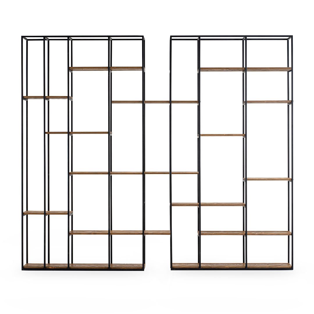 Irmak Kitaplık, masif ahşap dokusunu metalin modern dokunuşları ile harmanlayarak modern bir bakış açısı kazandırıyor. Samimi, natürel ve asil tarzınızı yansıtan detayları ile Irmak uzun yıllar zevkle kullanacağınız bir tavır sergiliyor. Ürün Tanımı: Irmak Kitaplık.    Malzeme: Raf kenarları ve ayaklarda siyah elektrostatik boyalı metal malzeme kullanılmış olup blokların üst tablalarında masif çam panel malzeme kullanılmıştır.   Bakım: Nemli bez yardımıyla temizlenebilmektedir.   Genişlik: 245 cm    Derinlik: 28 cm    Yükseklik: 209 cm