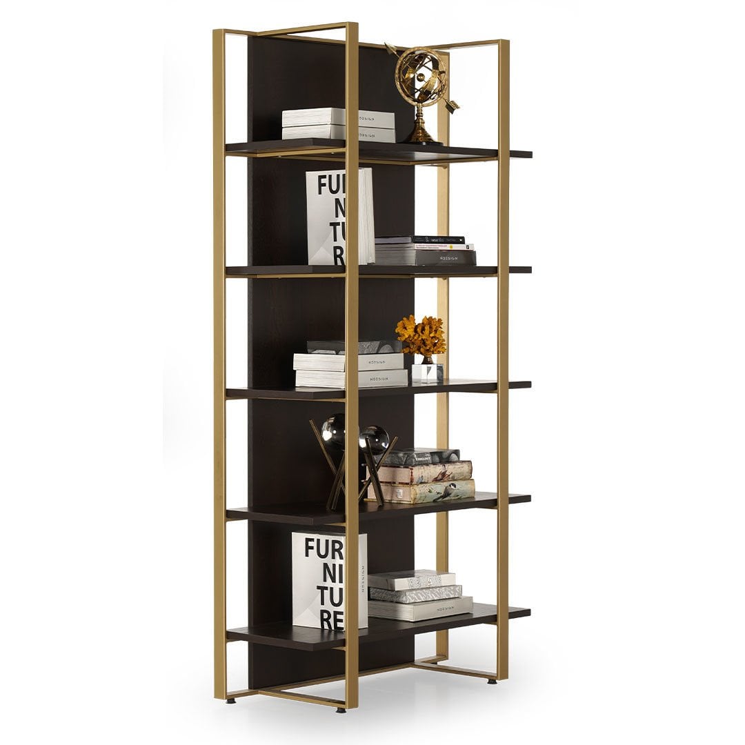 Yalın ve şık tasarımı ile lüks kavramına yeni bir boyut kazandıran Magenta koleksiyonu, kendisine hayran bırakacak kadar İddialı. Modern çizgiler ile hayat bulan detaylar ahşabın dokusundan vazgeçmeyenlere sadeliği ve şıklığı bir arada sunuyor. Kullanım kolaylığından ödün vermeden pirinç detayları ile zerafetini bir adım öteye taşıyor.Ürün Tanımı: Magenta Kitaplık.    Malzeme: Gövdesi, egzotik hareli doğal meşe kaplama ahşaptan üretilen kitaplığın ön yüz ve ayaklarında satine pirinç elektrostatik boyalı metal malzeme kullanılmıştır.    Bakım: Ilık sabunlu su yardımıyla temizlenebilmektedir.   Genişlik: 86 cm    Derinlik: 36 cm    Yükseklik: 170 cm