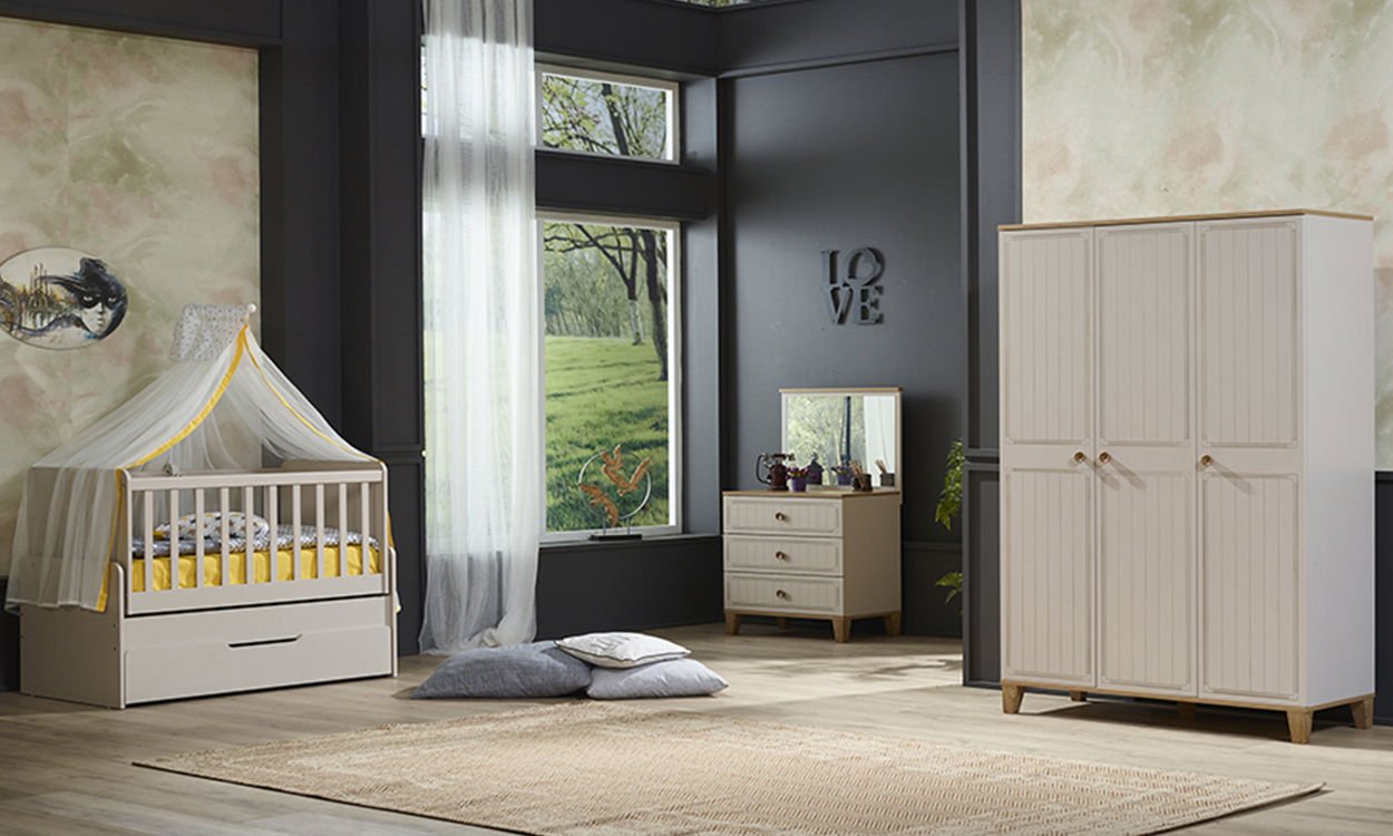Ürün içeriği; Beşik, 3 kapılı dolap ve şifonyerden oluşmaktadır.