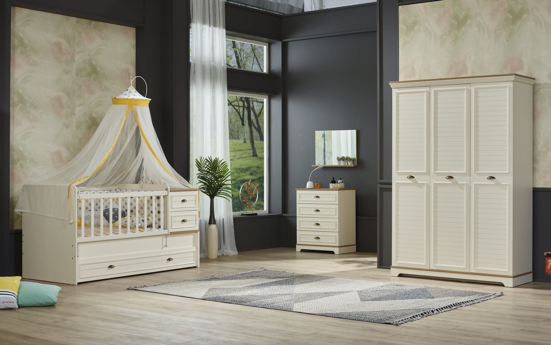 Ürün içeriği; Beşik, 3 kapılı dolap ve şifonyerden oluşmaktadır.
