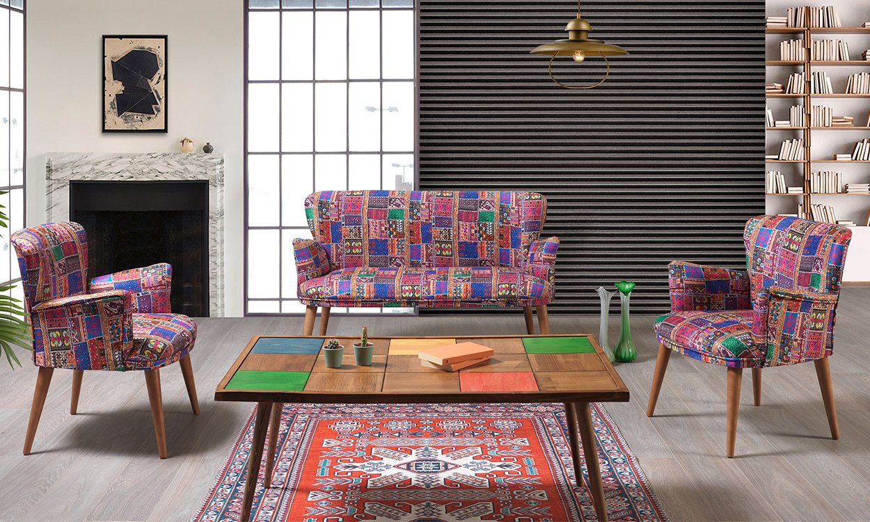 Mila Patchwork 2+1+1 Çay Seti (Balkon, Salon, Ofis, Cafe)