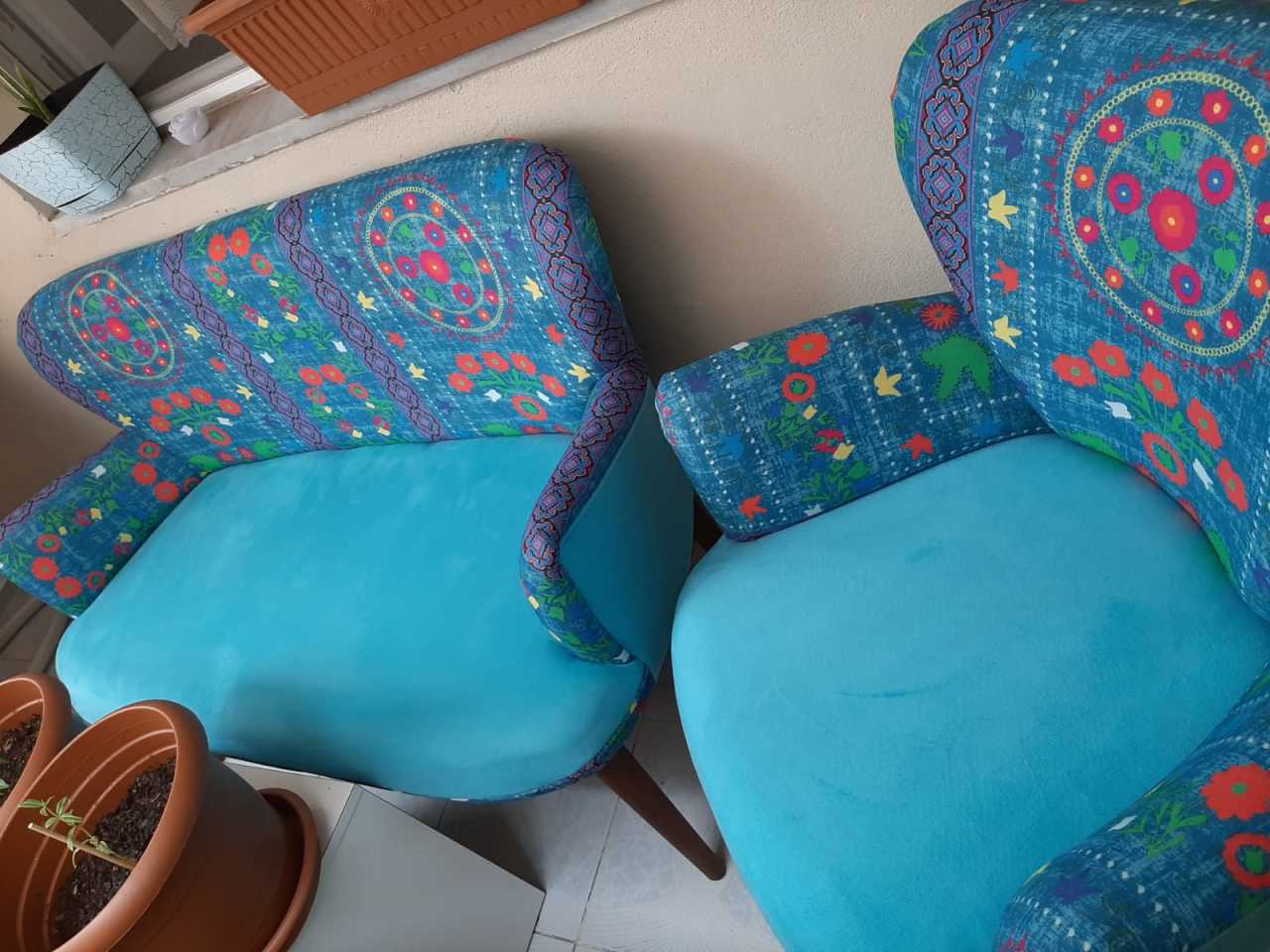 Etnik Desen TurkuazÇay Seti İkili Koltuk (Balkon, Salon, Cafe, Ofis)