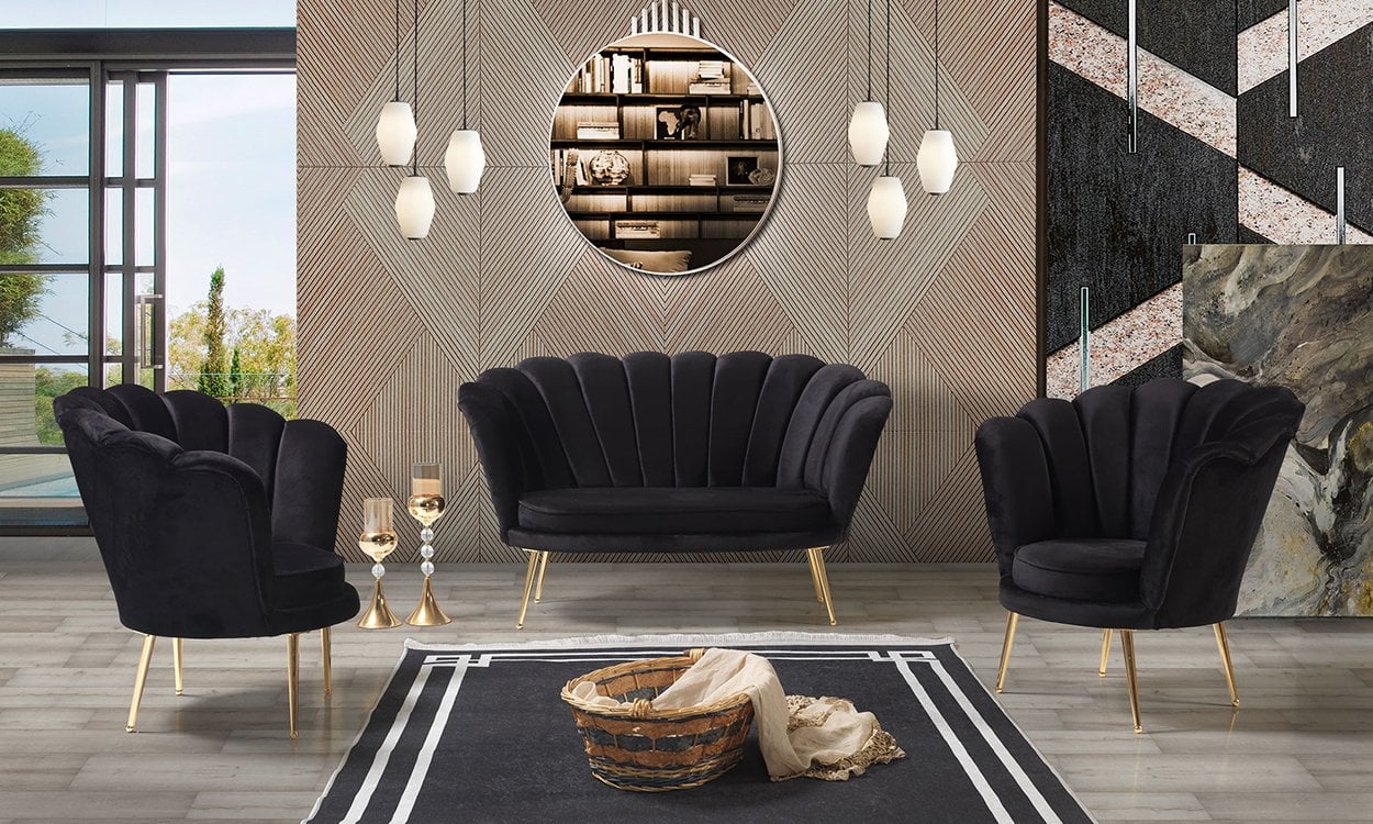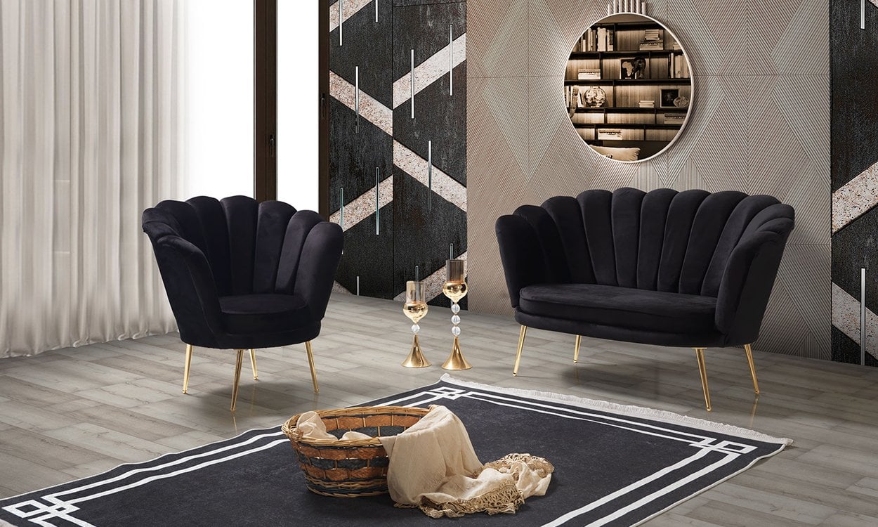 İnci Siyah Çay Seti İkili Koltuk (Salon, Balkon, Cafe Ofis)