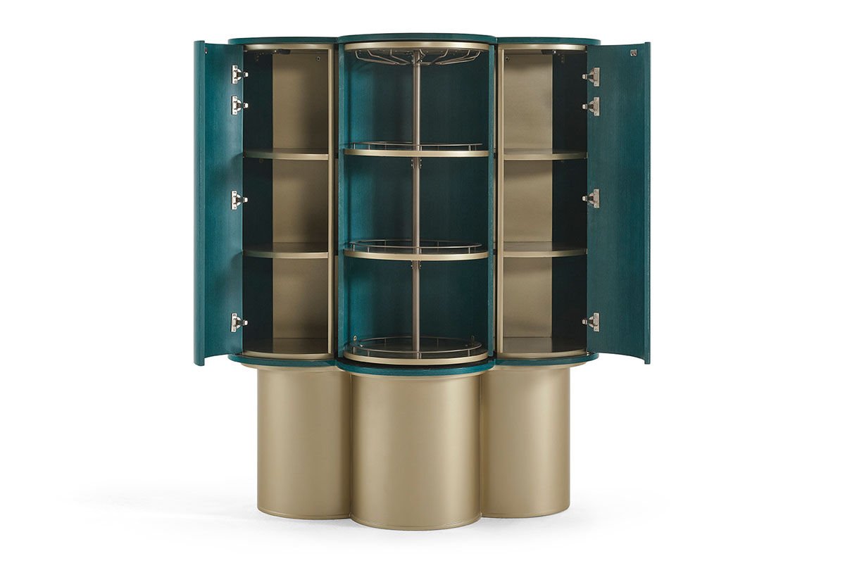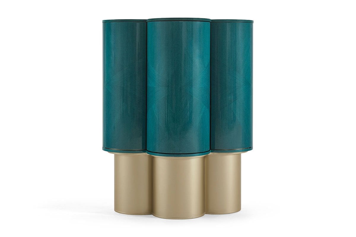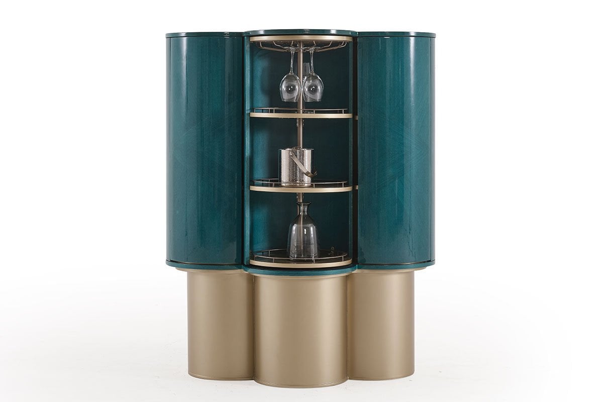 Azura, turkuazın kadim anlamından ilham alır. Lounge masası ve yemek masası olmak üzere iki versiyondan oluşan bu tasarım, yüzeyinde kullanılan turkuaz kaplama ile nazarlık kültürüne zarif bir atıfta bulunur. Bar modülü, damla motifinden esinlenen formuyla bereketi, sürekliliği ve yaşamın akışını simgeler. Yüzyıllardır koruyucu ve dengeleyici bir sembol olarak görülen turkuaz renk, Azura'da yalnızca estetik bir tercih değil; mekâna sakinlik, iyi his ve bütünlük taşıyan bir anlam katmanıdır.Ürün Tanımı: Azura Bar (Turkuaz)Ürün Malzemesi: Gövde ve kapak alanlarında turkuaz freze endüstriyel ahşap kaplama ve ayak detayları metalik kum beji mat lake malzemelerinden üretilmiştir.Bakım: Kolay çıkabilen lekeler için sabunlu su kullanılmalı, temizlerken kimyasal madde tercih edilmemelidir. Genişlik: 122 cm Derinlik: 69 cm Yükseklik: 152 cm