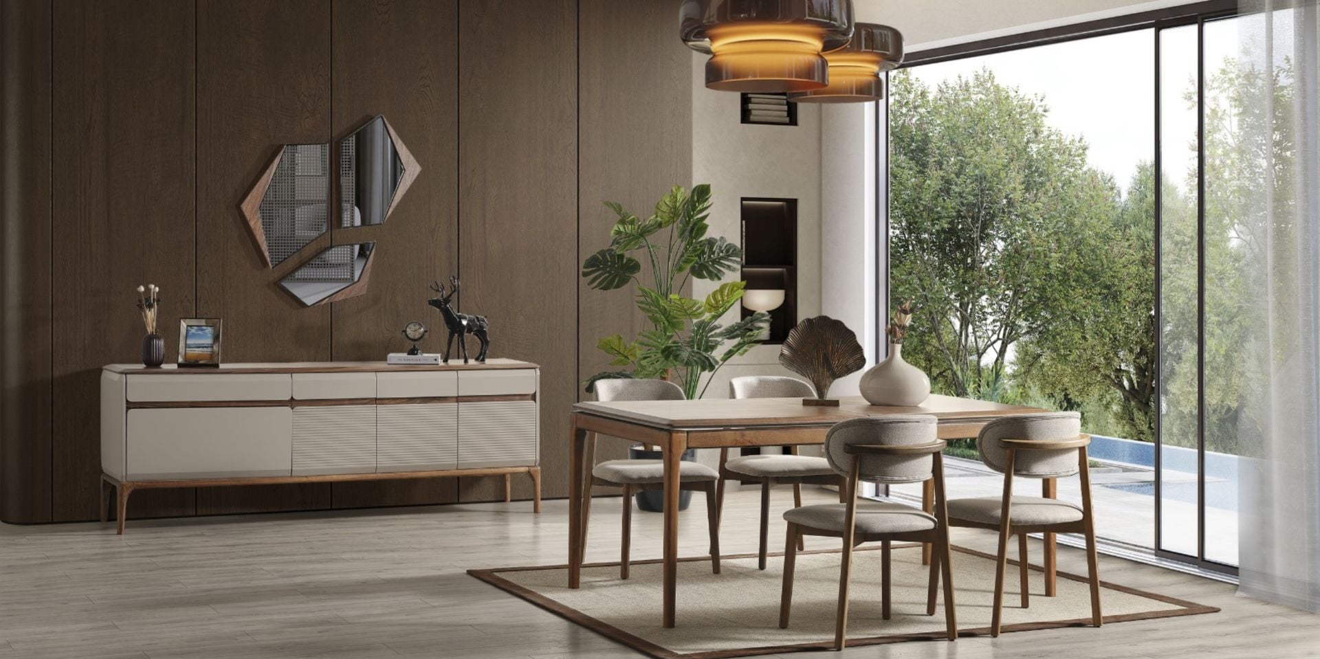· Yemek odası takımı 1 adet açılır masa, 6 adet sandalye 1 adet konsoldon oluşmaktadır.