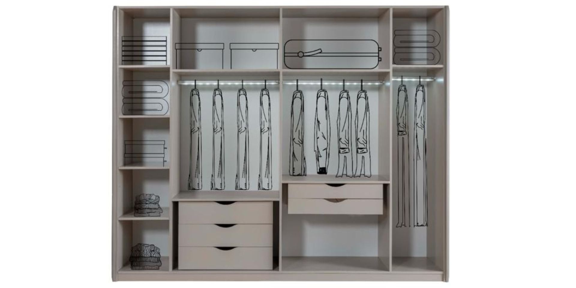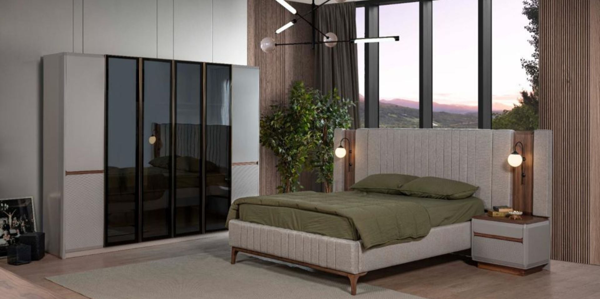 · Takım İçeriği; 1 adet 6 Kapaklı Dolap, Başlıklı Bazalı Karyola, Şifonyer + Ayna + Puf, 2 adet komodinden ve komodinlere entegre olabilen komodin panosundan müteşekkildir.