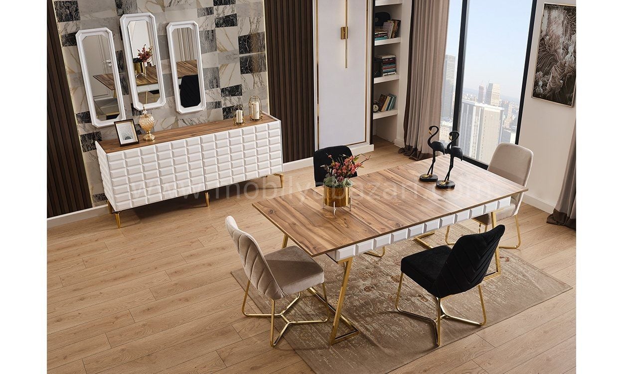 · Yemek odası takımı 1 adet masa, 6 adet sandalye ve 1 adet konsoldan oluşmaktadır.
