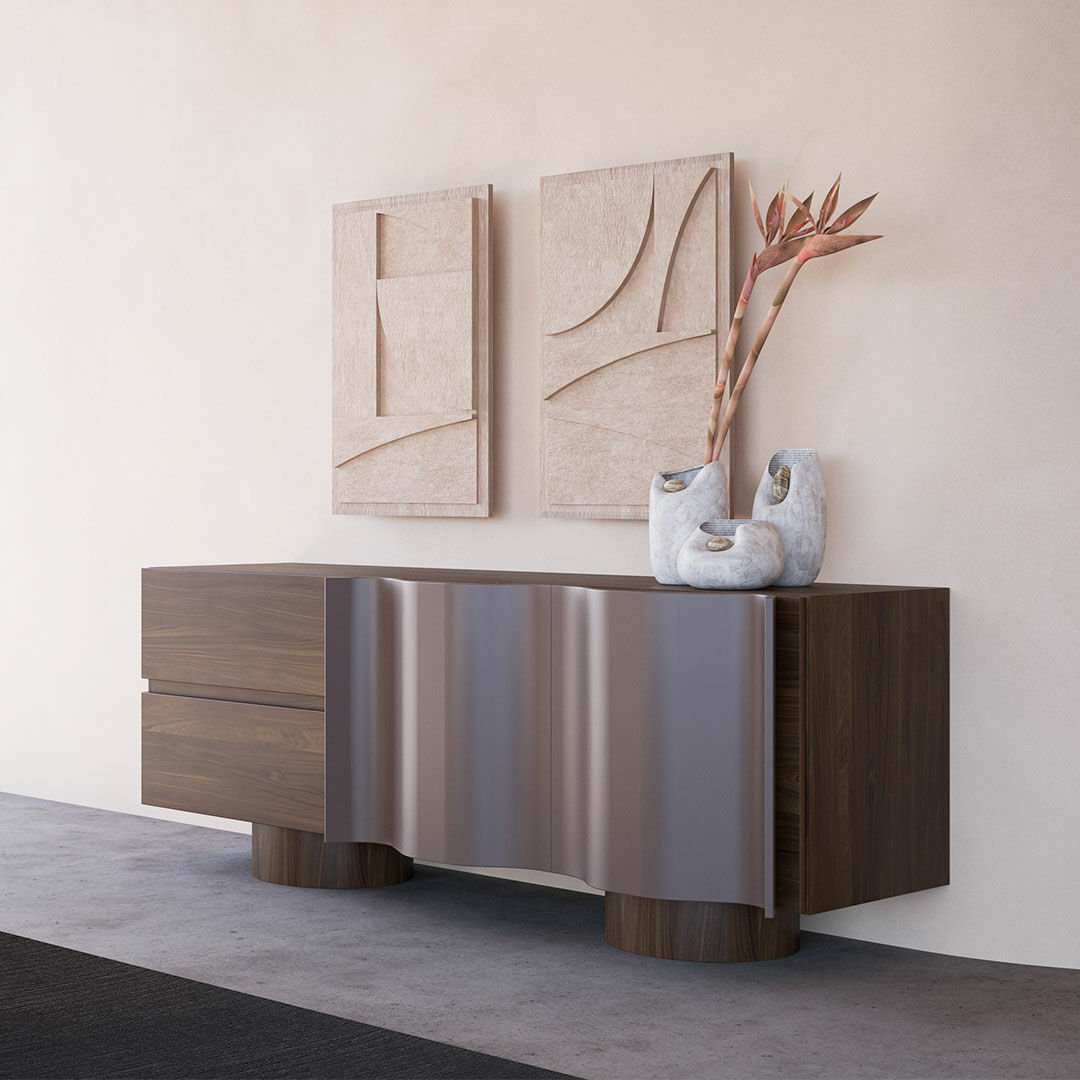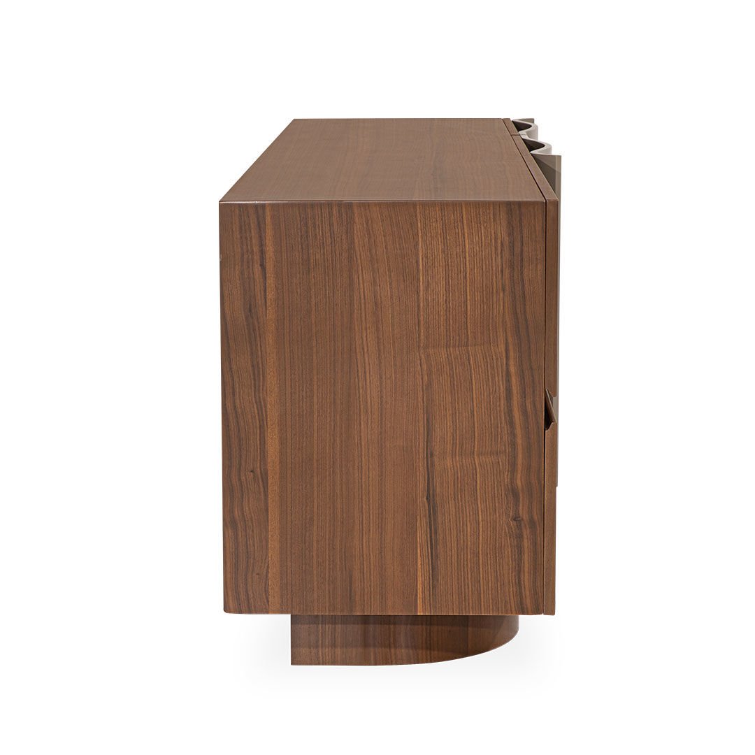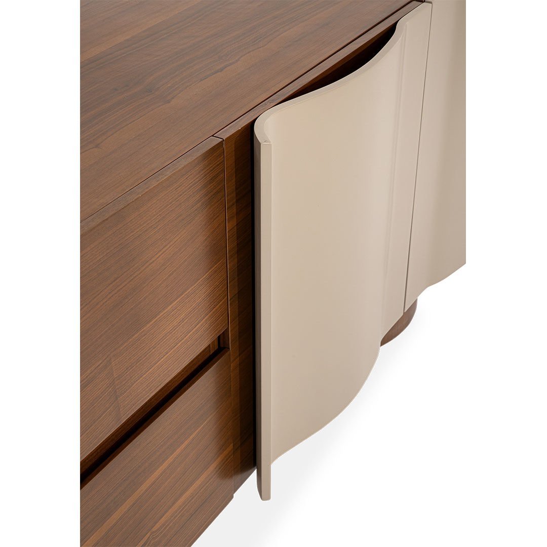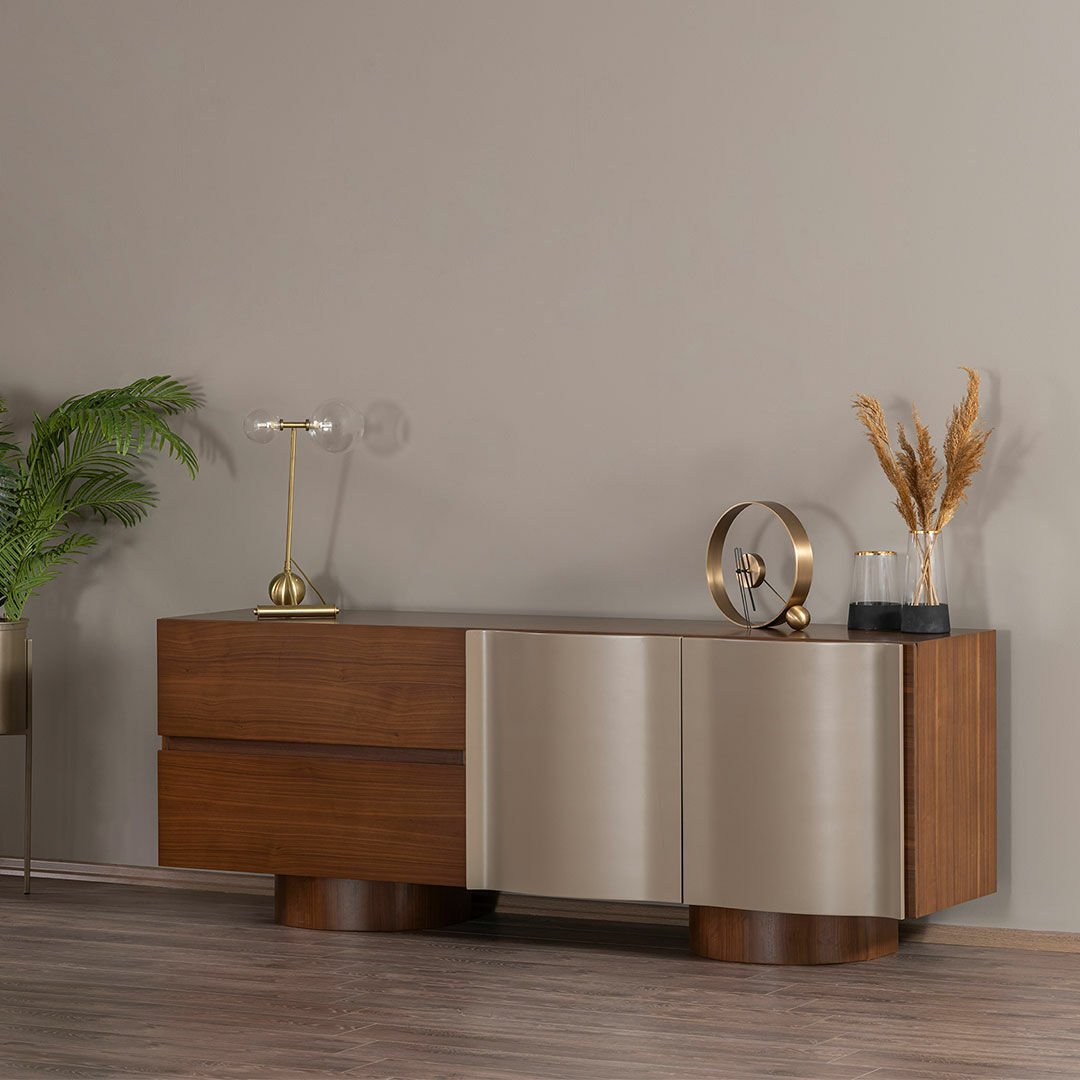 Espresso koleksiyonu modernist eğrileri ve kıvrımlı hatlarıyla yaşam alanlarında samimi bir atmosfer oluşturmayı amaçlıyor. Doğal hareli ceviz kaplamadaki hareketlilik gri lake yüzeyler ile uyumlu bir birliktelik sergiliyor. Ürün Tanımı: Espresso Konsol. Ürün Malzemesi: Doğal hareli amerikan ceviz kaplama ve vizon ipek mat lake malzemeden üretilmiştir. Bakım: Ilık sabunlu su yardımıyla temizlenebilmektedir. Genişlik: 213 cmDerinlik: 62 cmYükseklik: 80 cm