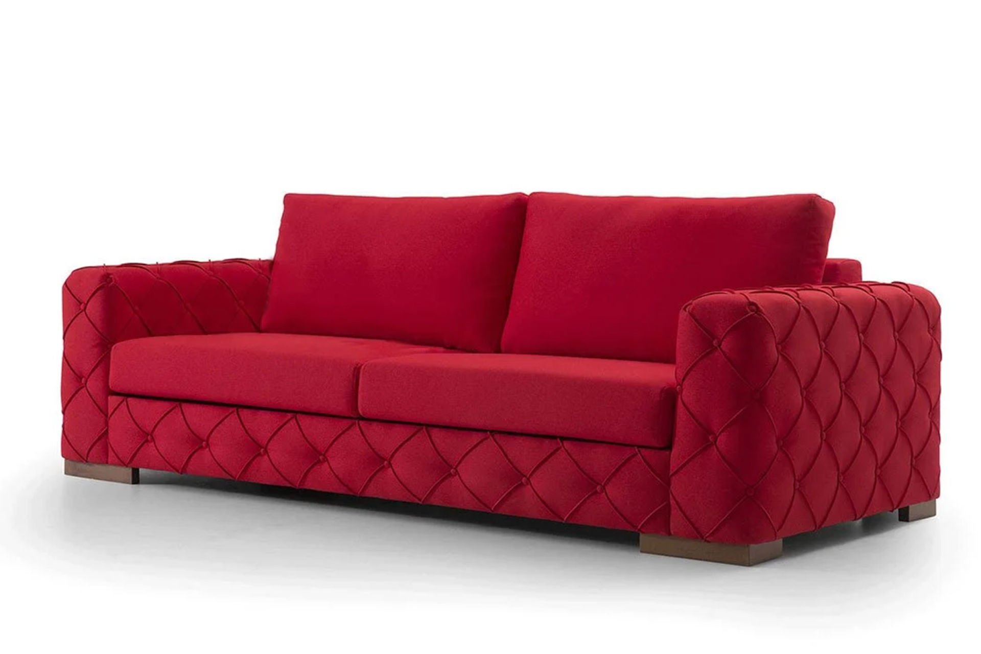 Catherina, baza ve kollarda yer alan kapitone detaylarının yanı sıra 3’lü koltukta yatak olabilme özelliği ile de estetik ve fonksiyonu bir arada barındırıyor. Geniş oturum alanı ve yumuşacık formu ile göze hitap eden bir konfor hissi veriyor. Modern kapitone detayı ile çağdaş bir dekorasyon stilini yaşam alanları ile buluştururken, ahşap ayak yapısı ile de mekana sıcak bir dokunuş katıyor.