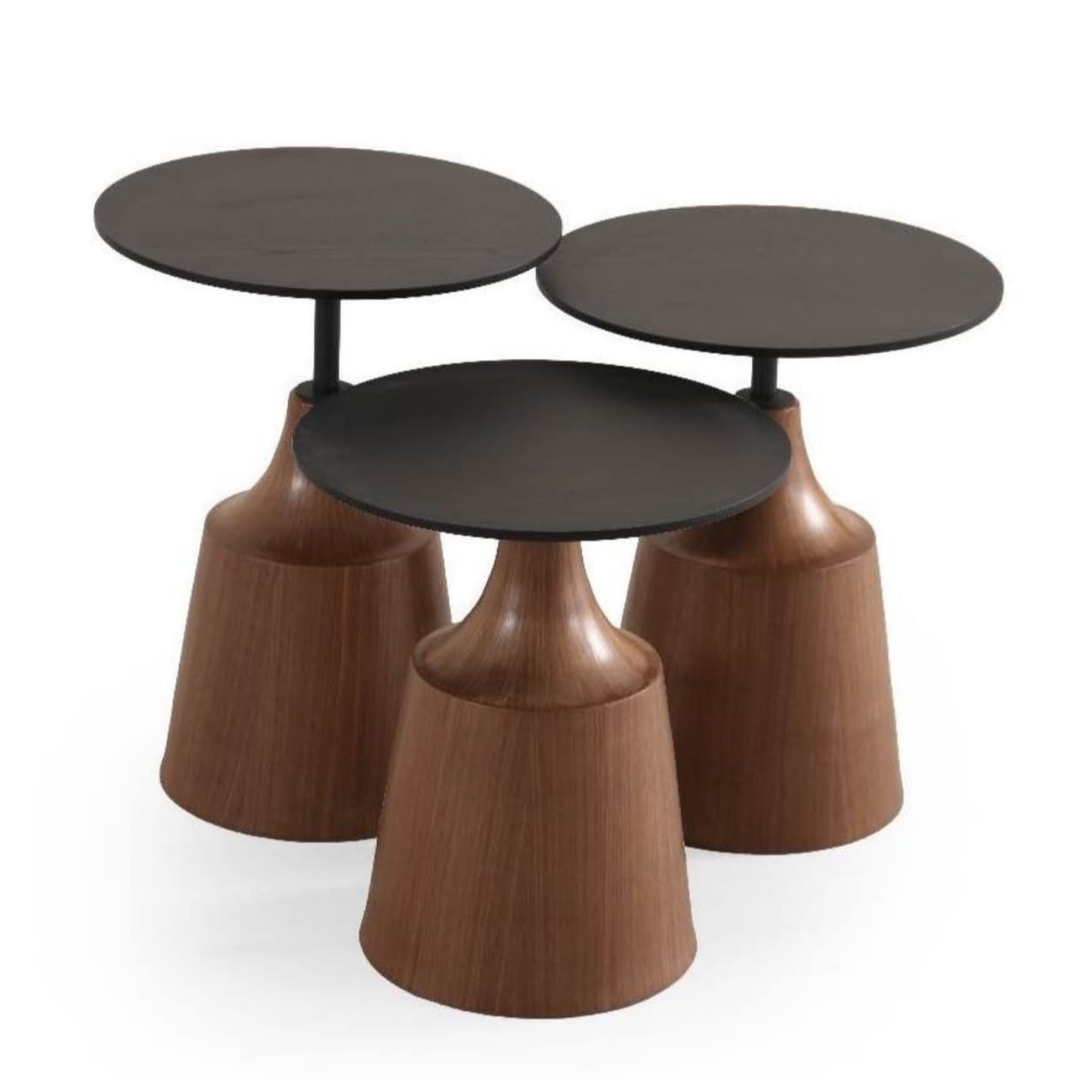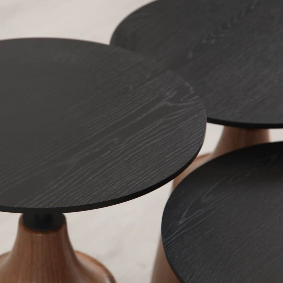 Alba  Zigon Sehpa Ürün Açıklaması Alba Zigon Sehpa, modern ve şık tasarımıyla dikkat çeken üçlü sehpa setidir. Ahşap konik ayakları ve zarif üst yüzeyiyle oturma odası, salon ve ofis dekorasyonu için mükemmel bir seçimdir. Kullanışlı, dayanıklı ve estetik yapısıyla hem dekoratif hem de fonksiyonel bir tamamlayıcıdır. VİDALI MONTAJ EL ALETLERİ İLE KOLAY KURULUM Ağırlık: 7 kg Hacim: 0,07 m3 Renk: siyah Ayak Rengi: ceviz Ayak Malzemesi: metal Üst Tabla Malzemesi: mdf SEHPA İÇİN DETAYLAR H: W: D BÜYÜK: 57X43X43 CM ORTA:  52X43X43 CM KÜÇÜK: 47X43X43 CM PAKET DETAYLARI ÜST TABLALAR 10-53-50 CM 0,03M3 AYAK 72-25-25 CM 0,05 M3