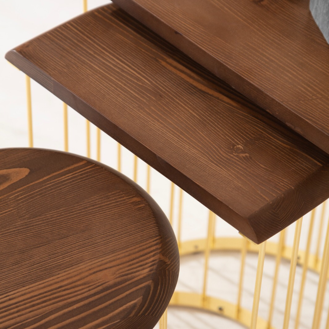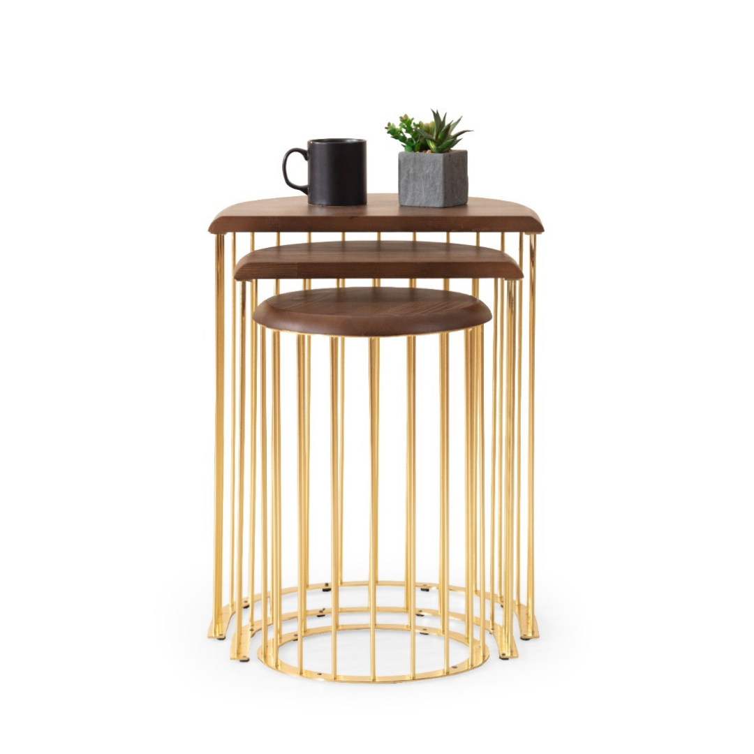 Nova Gold Zigon Sehpa Ürün Açıklaması Nova Gold Zigon Sehpa, modern ve endüstriyel tasarımı ile dikkat çeker. Koyu pirinç yüzeyi ve dayanıklı metal ayakları, estetik ve sağlamlığı bir araya getirir. Üçlü set halinde sunulan bu sehpalar, yerden tasarruf sağlar ve ihtiyaç duyulduğunda kolayca kullanılabilir. oturma odaları, salonlar ve ofisler için mükemmel bir tamamlayıcı mobilyadır. VİDALI MONTAJ EL ALETLERİ İLE KOLAY KURULUM Ağırlık:  13 kg Hacim: 0,16m3 Renk: CEVİZ Ayak Rengi: GOLD Ayak Malzemesi: METAL Üst Tabla Malzemesi: LADİN SEHPA İÇİN DETAYLAR H: W: D BÜYÜK: 58X46X43 CM ORTA:  53X30X39 CM KÜÇÜK: 48X33X33 CM