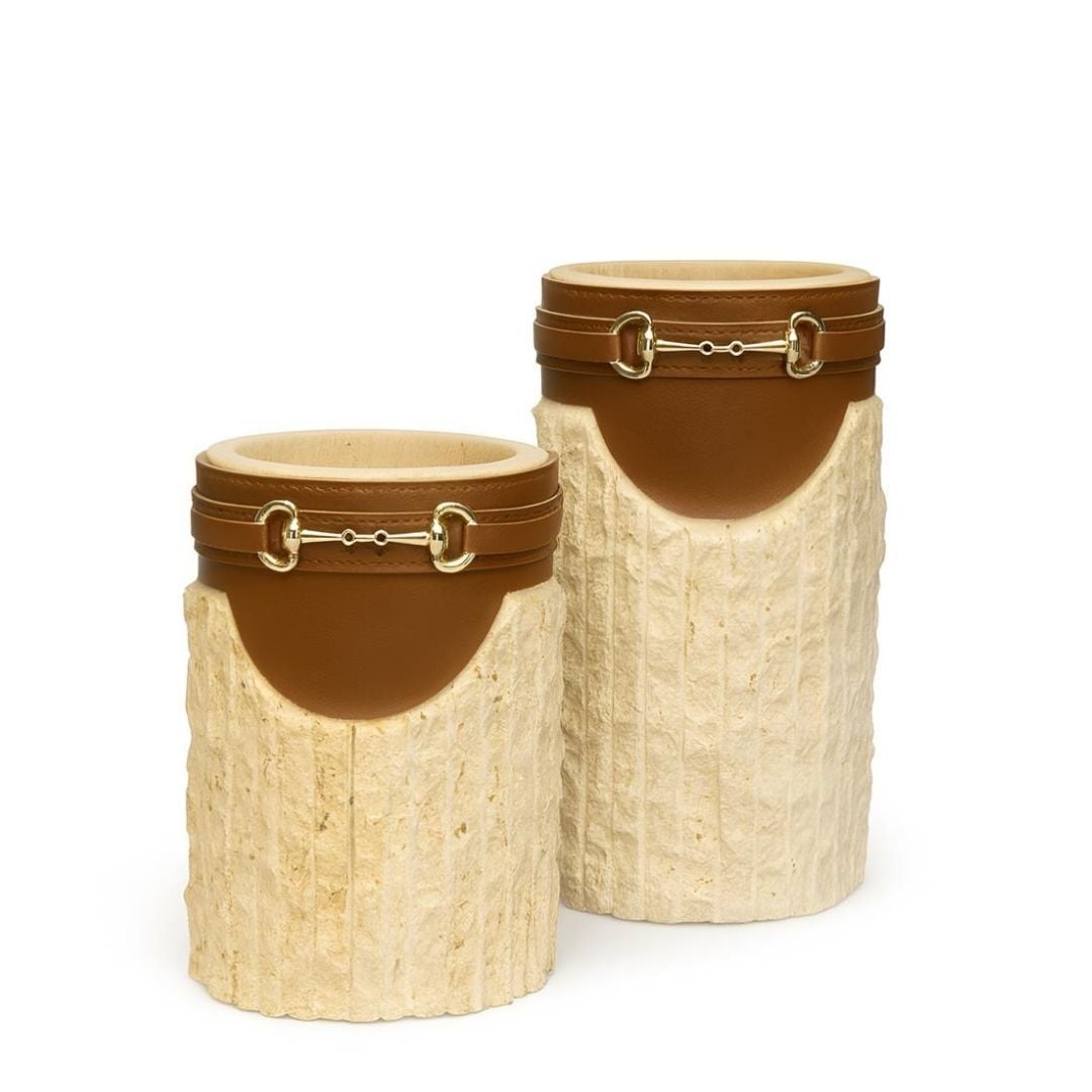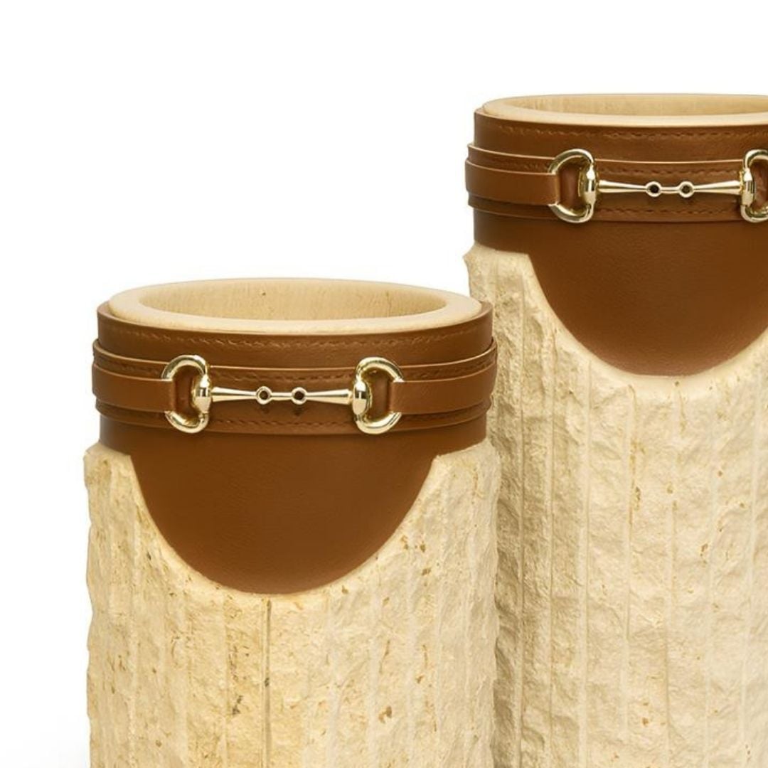 Traverten Deri Kemerli Vazo Seti