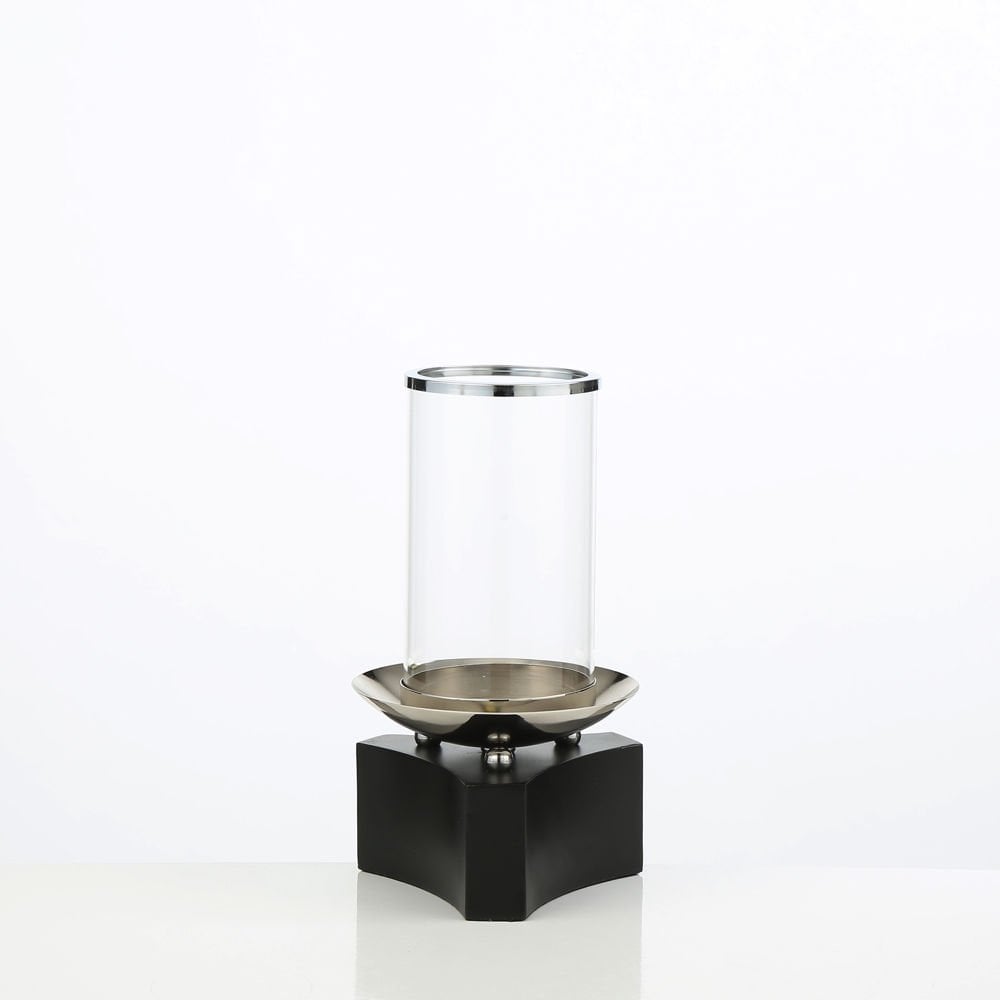 Vitale Siyah Tabanlı Cam Mumluk 16*16*27 Cm