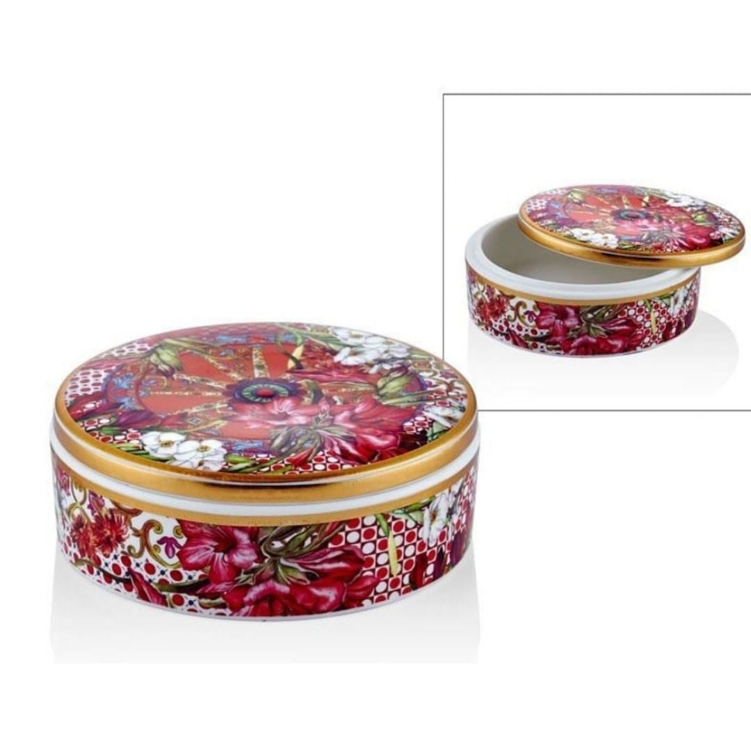 Lilyum Desenli Alçak Yuvarlak Kutu