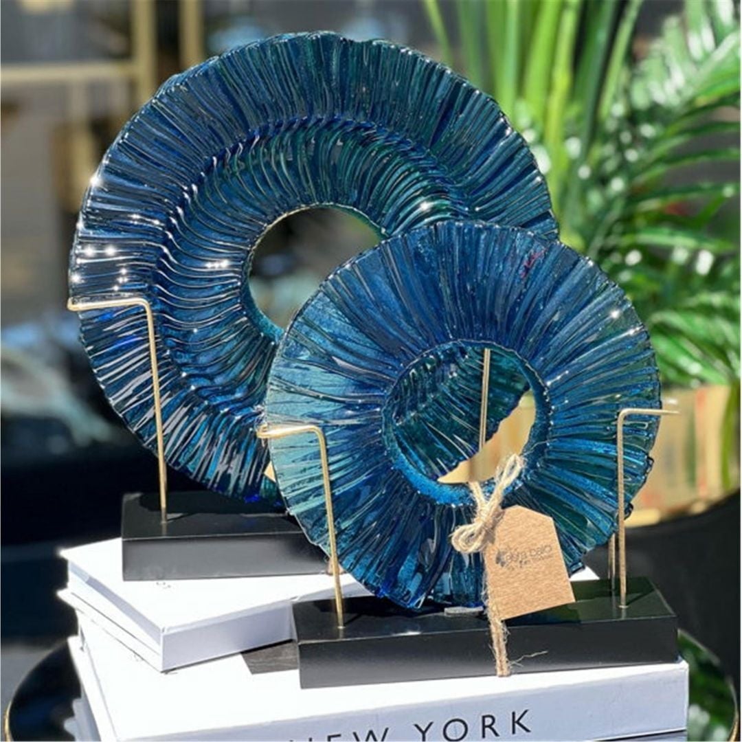 Cam Dekor Obje 2 li Ahsap Kaideli Mavi