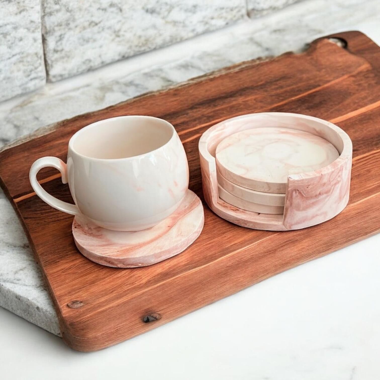 Denfix Bardak Altlığı | Turuncu Mermer Desenli