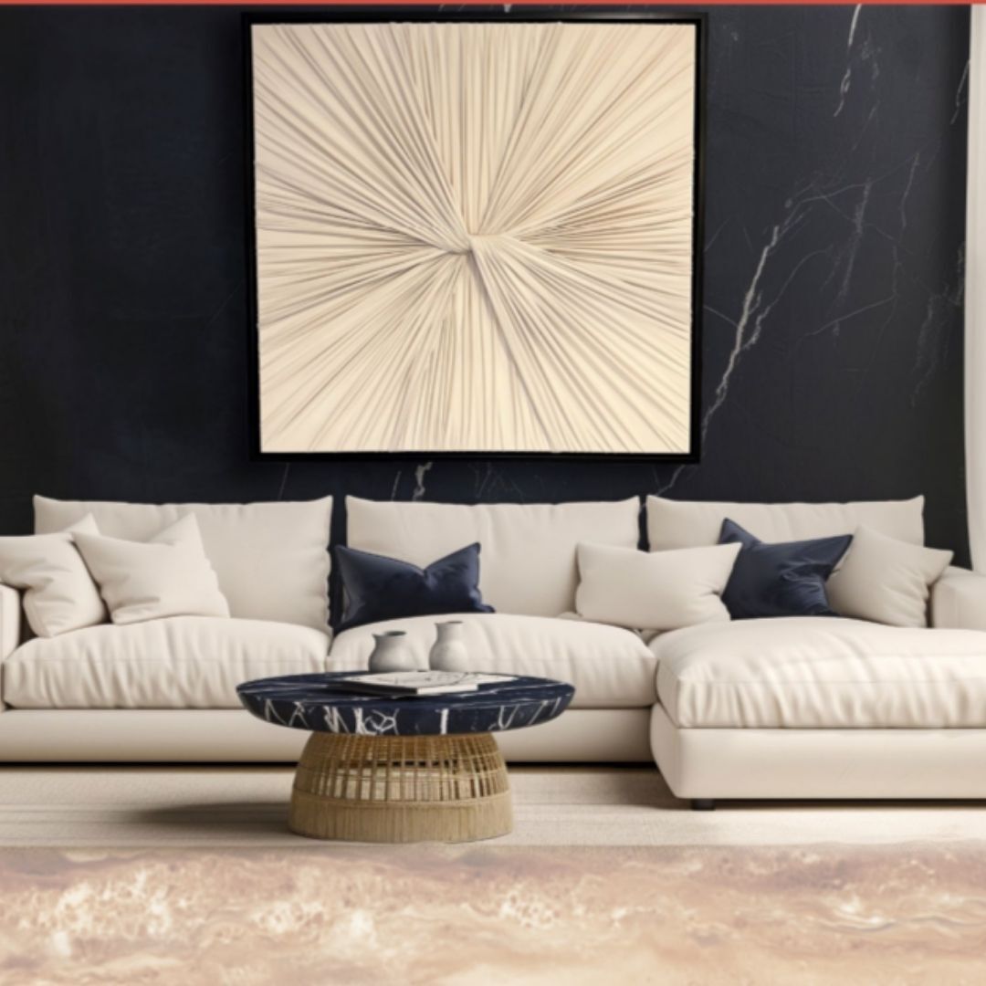 Ukyco El Yapımı Kumaş Tablo – Krem Ukyco El Yapımı Kumaş Tablo – Krem, ressamlarımız tarafından tamamen el yapımı tekniklerle üretilmiş, özel kumaşlar ve farklı materyallerin birleşimiyle oluşturulmuş üç boyutlu bir duvar aksesuarıdır. Krem tonlarının sakin ve sofistike görünümü, modern ve doğal dekorasyonlarda zarif bir atmosfer yaratır. Ürün Özellikleri Her tablo eşsizdir ve el işçiliğinin doğal dokusunu taşır. Kullanılan özel kumaşlar ve katmanlı yapı, esere derinlik ve hareket kazandırır. Ürün çerçeveli olarak gönderilir ve herhangi bir ek işlem gerektirmeden duvara asılmaya hazırdır. Ölçüler Ebat: 105 cm × 105 cm Üretim Süresi Ürün tamamen el yapımı olarak üretildiğinden hazırlık süresi bulunmaktadır. Ürün 2 hafta terminlidir. Kullanım Alanları Salon, oturma odası, yatak odası, ofis, otel ve estetik dekorasyon isteyen tüm mekanlar için ideal bir duvar sanat eseridir. Modern, boho ve minimal mekan konseptlerine mükemmel uyum sağlar.