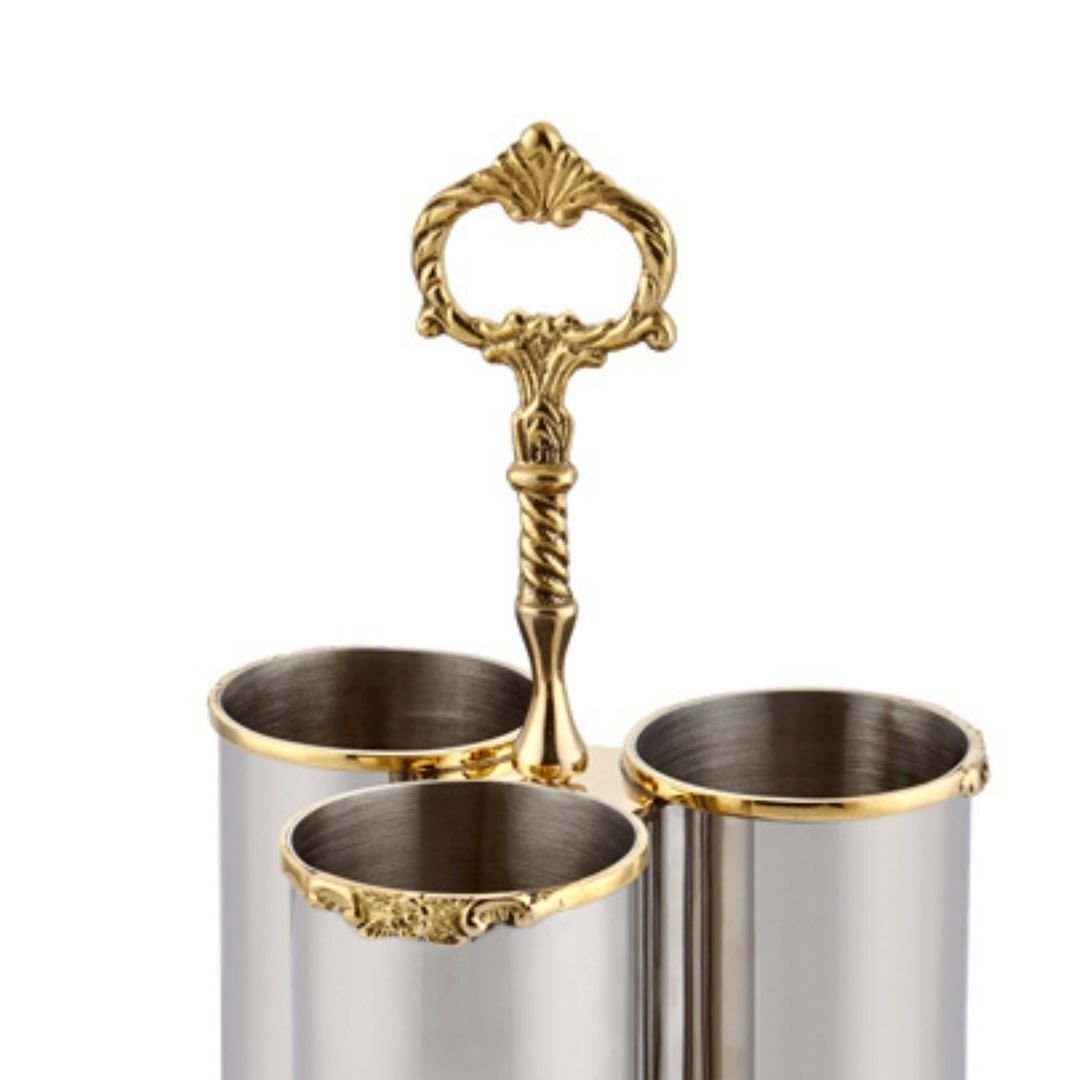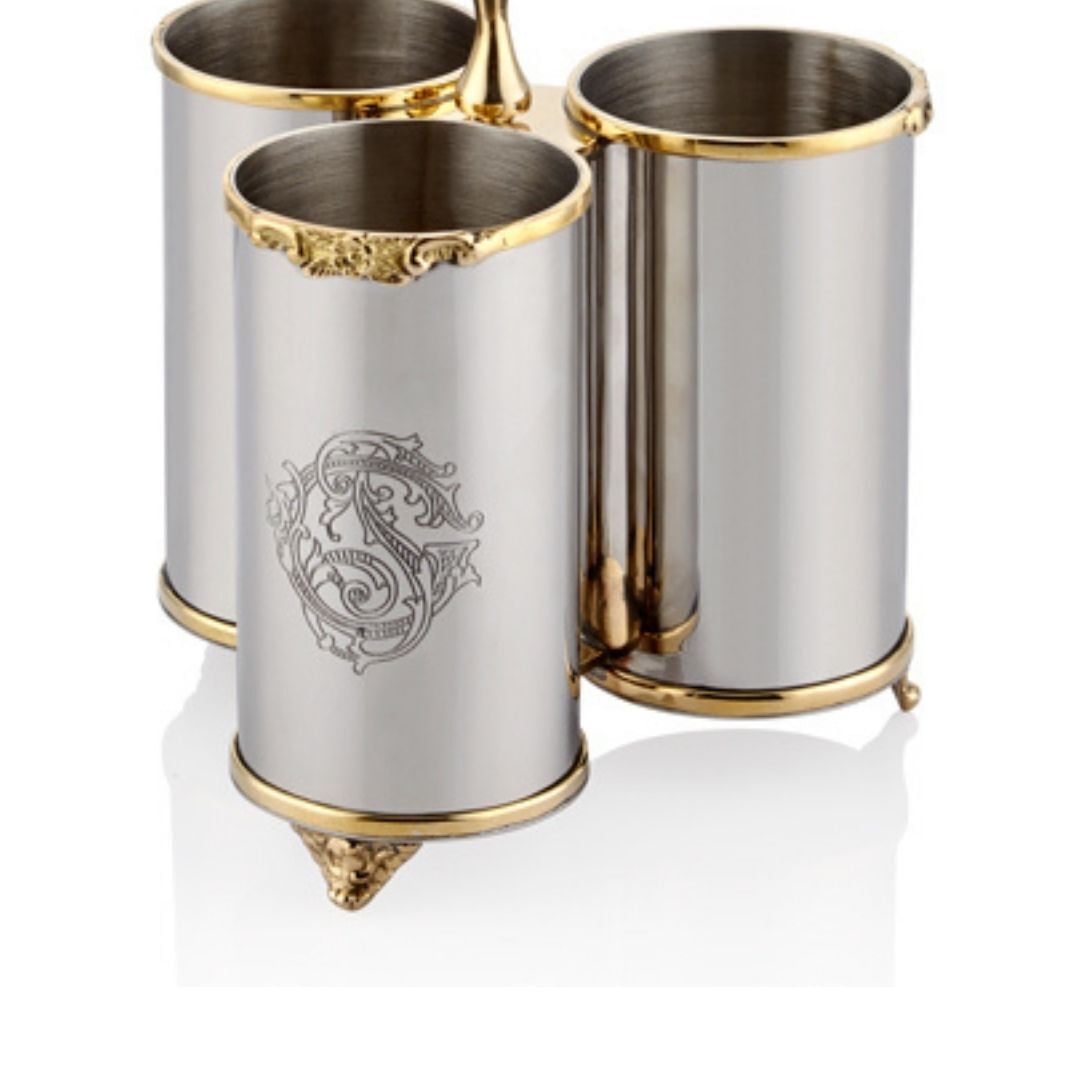 Lamedore Prinç Ottoman  3 lü Kaşıklık*Malzeme : pirinç  * Renk : gümüş ve gold bordür kaplama    * Kullanım Talimatı : nemli bez ile silip kurulama işlemi yapılmalı ağır          kimyasal kesinlikle kullanılmamalı Ölçü detay : 17X7X26 CM