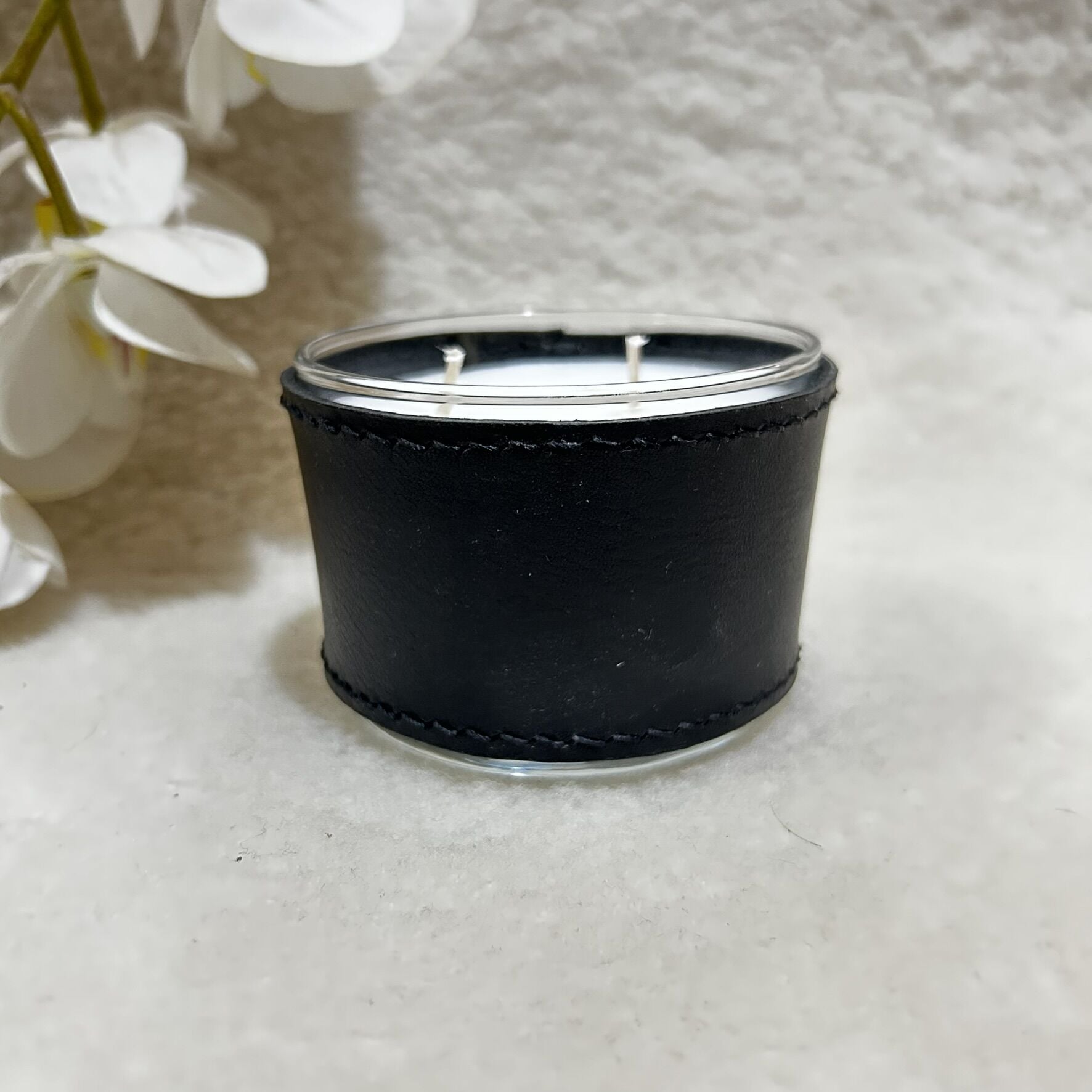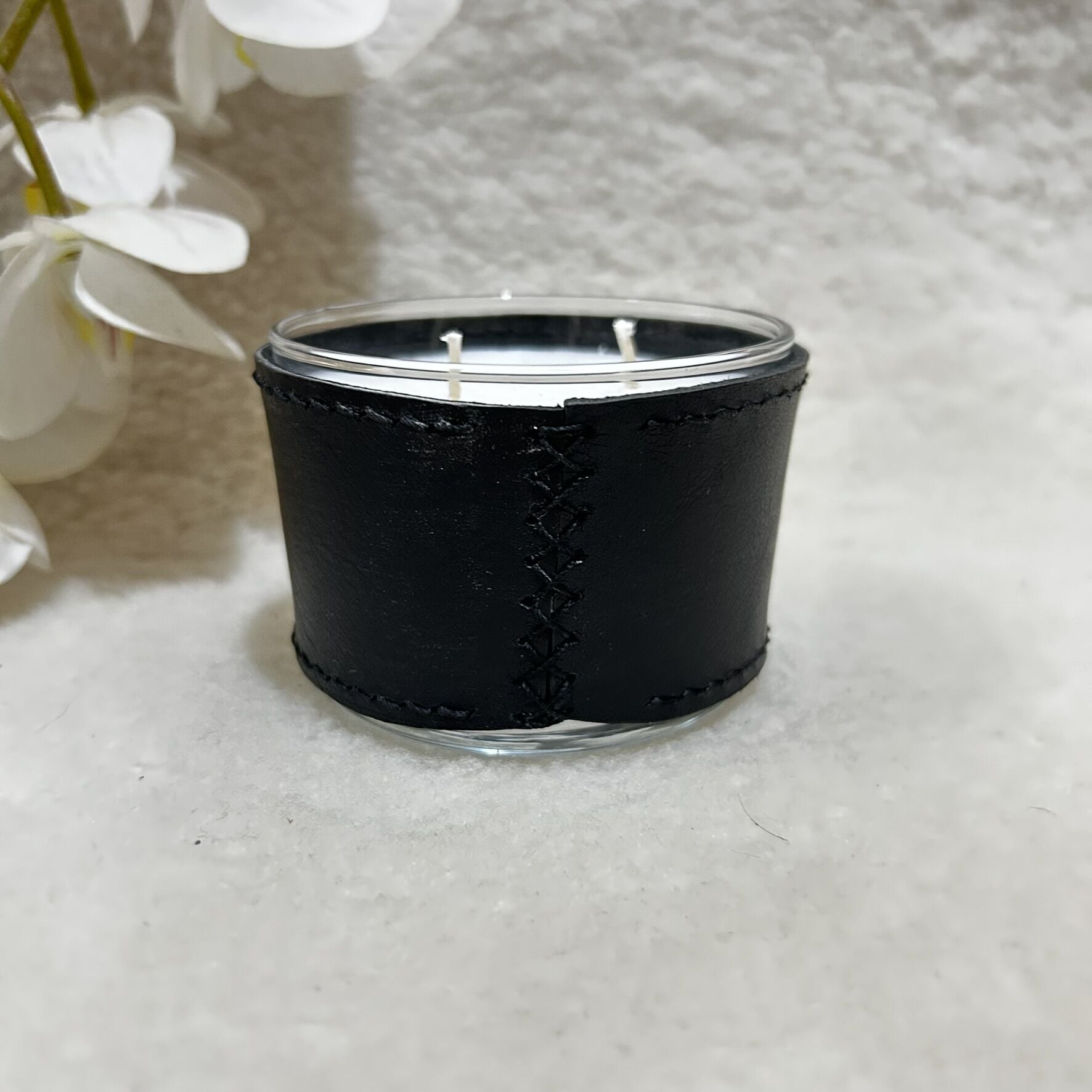 Sİyah Deri Kaplı Küçük Cam Mum