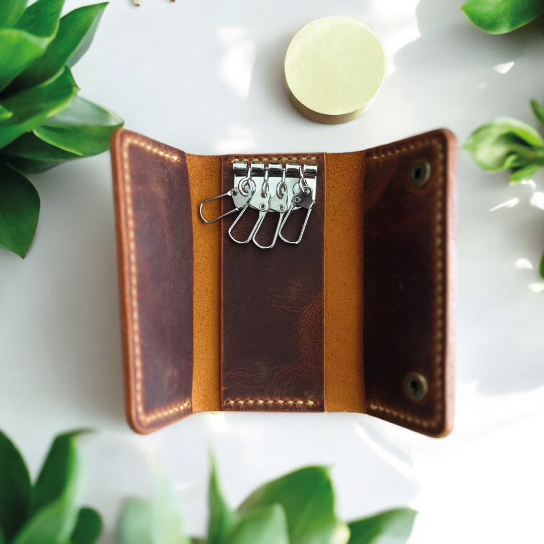 Kavra | El Yapımı Hakiki Deri Anahtarlık - Camel Kavra | El Yapımı Hakiki Deri Anahtarlık - Camel, günlük anahtar taşıma deneyiminizi stil sahibi ve düzenli bir hale getiriyor. Hakiki camel deri ile elde üretilen bu zarif anahtarlık, 4 adet metal kanca ile birden fazla anahtarı düzenli şekilde taşımanıza olanak tanır. Minimalist yapısı ve sağlam çıtçıtlı kapanışı sayesinde hem cebinizde hem çantanızda konforla taşınır. El işçiliğiyle şekillenen detaylar ve zamansız tasarımıyla Kavra, işlevselliği estetikle buluşturan özel bir aksesuardır. • 4 adet Anahtarlık Ürün Ölçüleri; Açık Hali: 16,5 cm x 10,5 cm Kapalı Hali: 16,5 cm x 10,5 cm