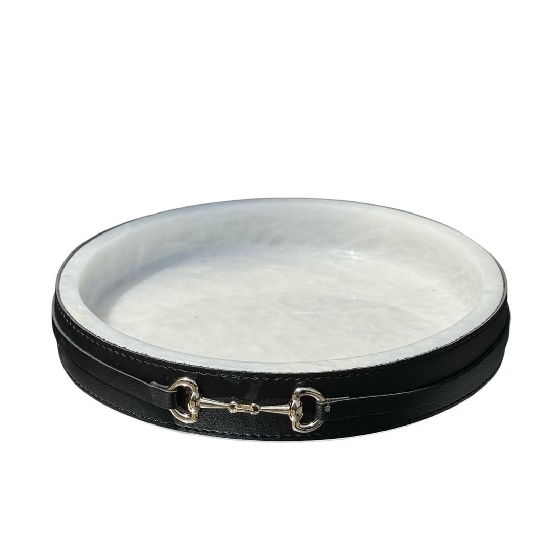 Beyaz Mermer Deri Bantlı Tepsi 23 cm