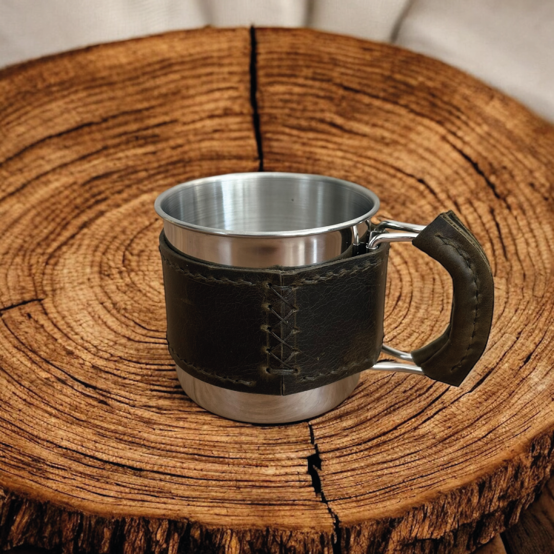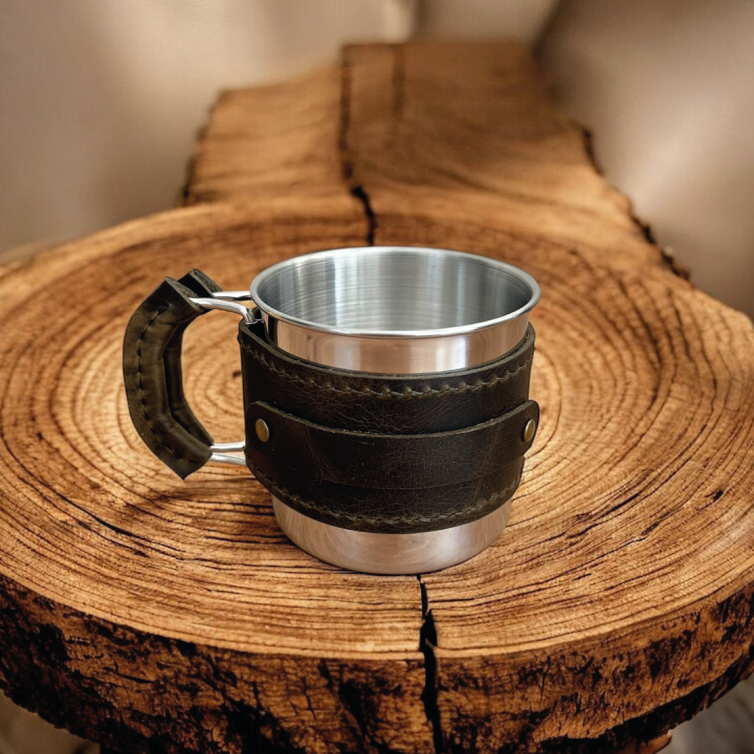 Campora | Hakiki Deri Kaplı Kamp Mug - Oliv Campora | Hakiki Deri Kaplı Kamp Mug - Oliv, doğanın ruhuna yakışır şıklıkta ve sağlamlıkta tasarlandı. Paslanmaz çelik yapısı ile dayanıklılık sunarken, el işçiliğiyle kaplanan hakiki deri kulp ve gövde sargısı, her yudumda konfor ve estetik vadediyor. Kamp, doğa yürüyüşü, ofis ya da evde sıcak & soğuk içeceklerinize eşlik edecek şık ve farklı bir seçenek arayanlar için birebir. Deri kaplama kolayca çıkarılabilir ve temizlik dostudur. Estetik ile işlevselliği buluşturan bu özel mug, stilinize karakter katar. - 350 ml -