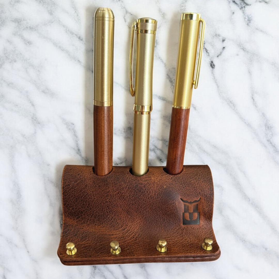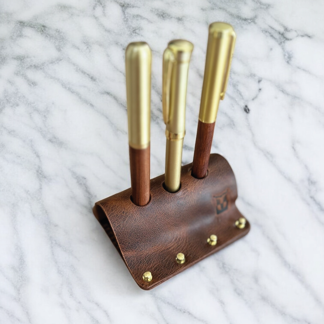 Dexon | El Yapımı Deri Masaüstü Kalemlik 3'lü - Taba