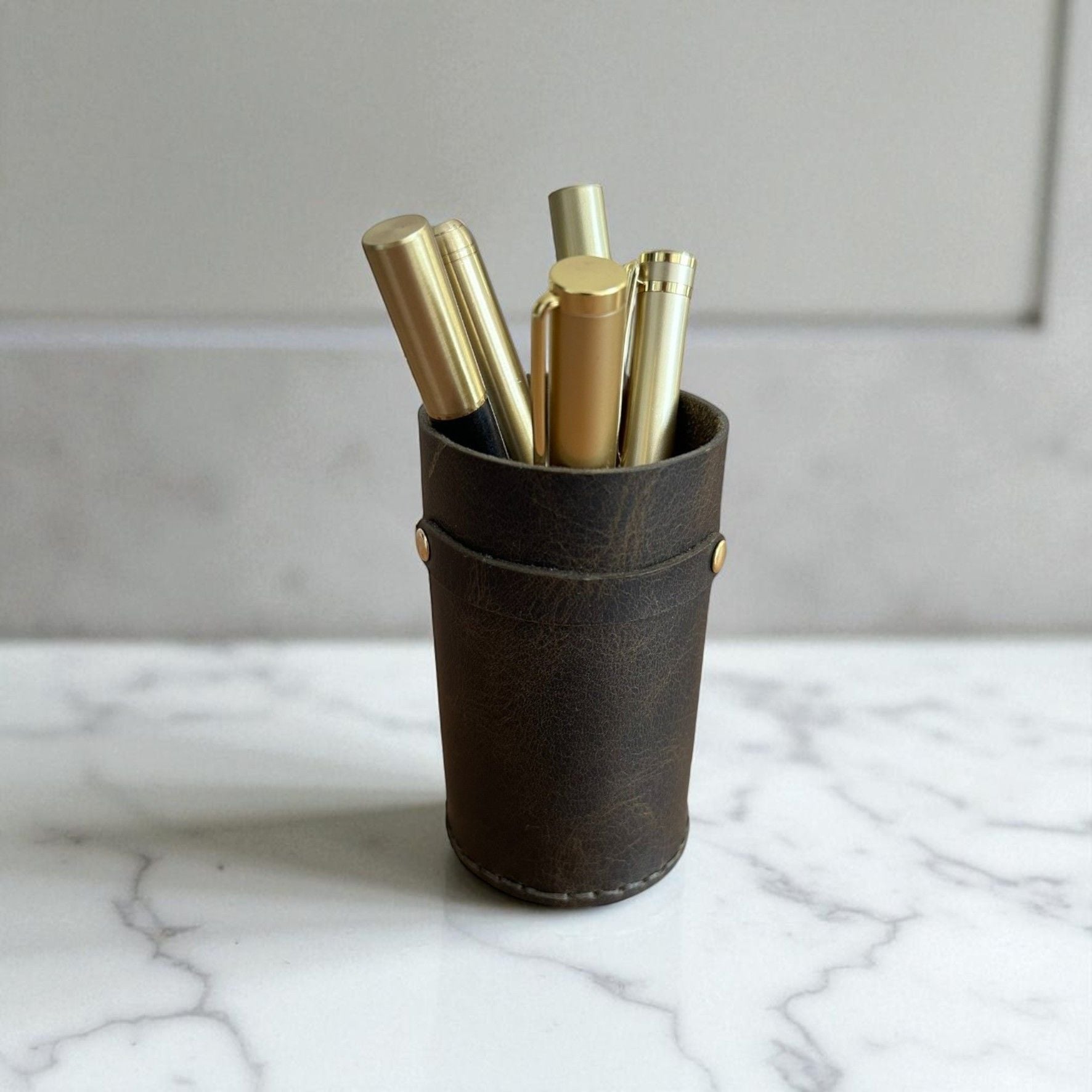 Scripto | Zanaatkar Deri Kalemlik - Oliv El işçiliğinin zarafetle buluştuğu Scripto | Zanaatkar Deri Kalemlik - Oliv, masaüstünüzde estetik ve düzeni bir araya getirir. Kalın yapısı ve tok duruşu ile zanaatkâr ruhunu yansıtan bu kalemlik, hem günlük kullanımda hem de hediye alternatiflerinde güçlü bir seçenek. Derinin doğal dokusu ve dayanıklılığıyla uzun yıllar size eşlik eder. Ukyco’nun özenli deri işçiliğiyle üretilen bu kalemlik, klasik ve modern ofis masalarına karakter katmak için tasarlandı. Ürün Ölçüleri; 10 cm x 6,5 cm