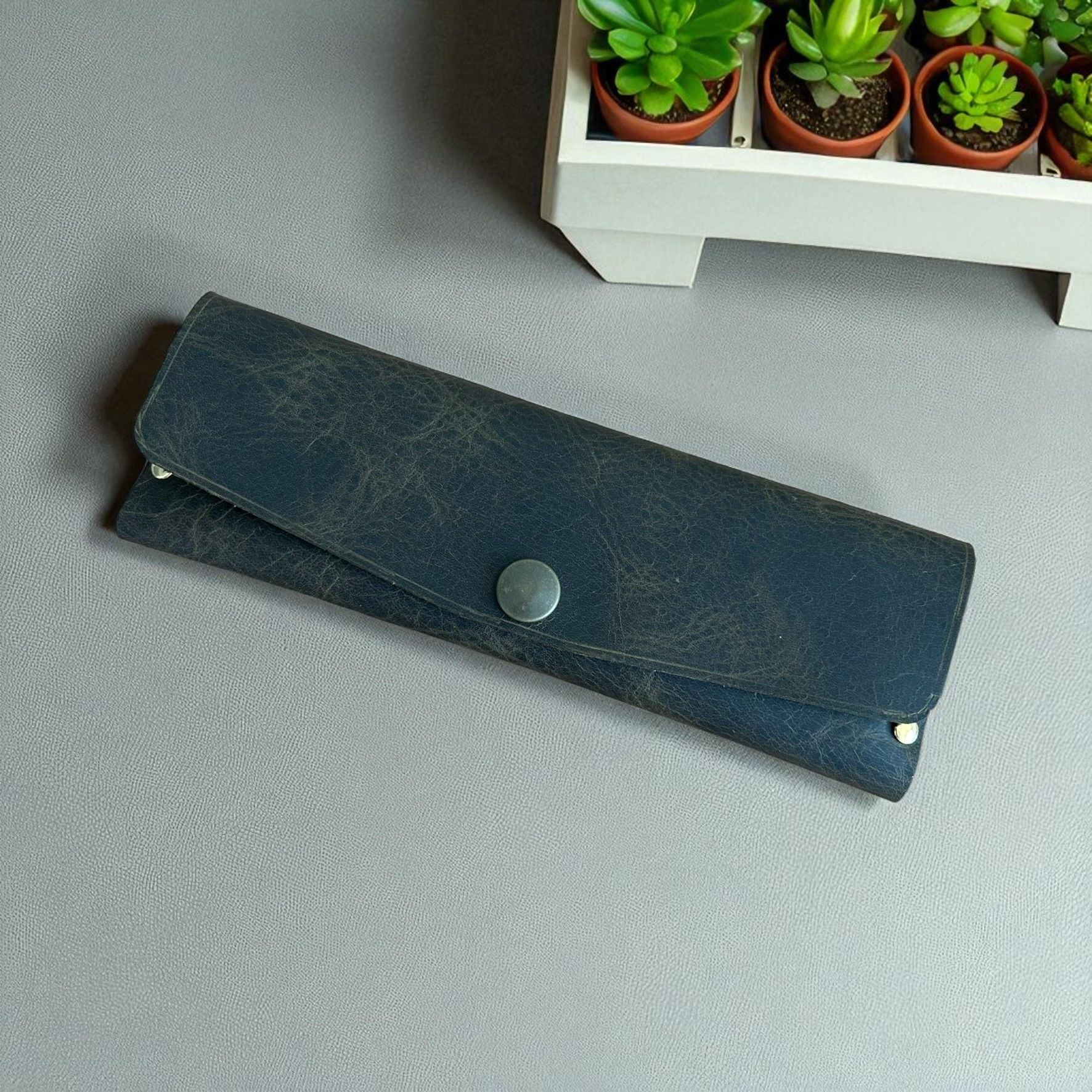 Stilo | Deri Perçinli Kalem Kutusu - Olive Stilo | Deri Perçinli Kalem Kutusu - Olive, el yapımı, perçin detaylı tasarımıyla klasik kalem kutularına çağdaş bir yorum getiriyor. Hakiki deri dokusu ile sağlam ve estetik bir kullanım sunan bu kalem kutusu, zarif formu sayesinde çantanızda veya masa üstünde düzenli bir alan yaratır. Kalemlerinizi korurken tarzınızı da yansıtmanızı sağlar. Ukyco kalitesi ile Stilo sizlerle beraber. Ürün Ölçüleri; 20 cm x 7 cm
