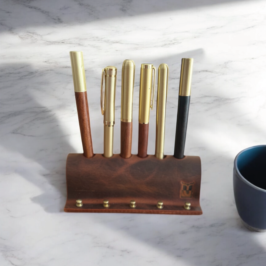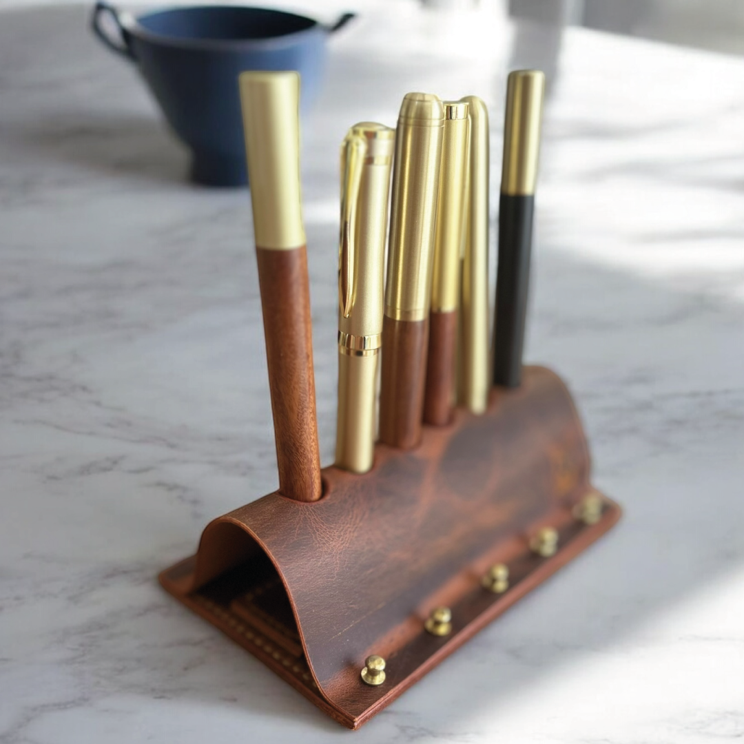 Dexon | El Yapımı Deri Masaüstü Kalemlik 6lı - Camel