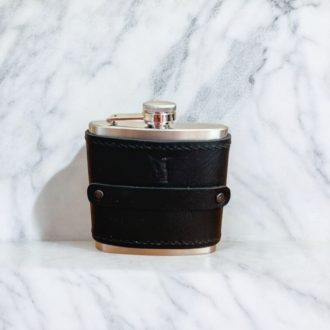 Drava | Deri Kaplamalı Cep Matarası - Siyah