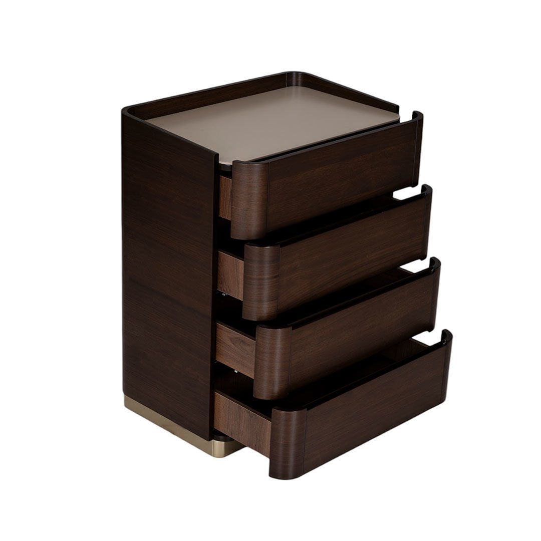 Rafine çizgisi ve lüks tasarım detaylarıyla dikkat çeken Tawny Yatak Odası malzeme ve renk kombinasyonu ile sofistike bir atmosfer yaratıyor. Geniş ve yüksek döşeme başlığı ve bel destekli pufu ile konfor hissini maksimum seviyede hissettirirken ihtiyaca yönelik tamamlayıcı parçaları ile de mekana imzasını taşıyor.Ürün Tanımı: Tawny Yüksek Şifonyer.Ürün Malzemesi: Doğal freze amerikan ceviz kaplama, kumsal ipek mat lake malzemeden üretilmiş olup metal kısımlarda kum beji elektrostatik boyalı metalden yararlanılmıştır.Bakım: Ilık sabunlu su yardımıyla temizlenebilmektedir.Genişlik: 80 cmDerinlik: 52 cmYükseklik: 100 cm