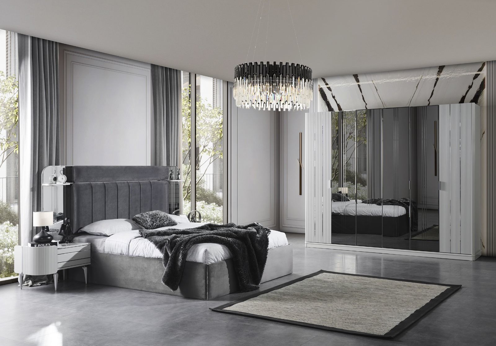 | Takım İçeriği | 1 Adet 6 Kapaklı Gardırop, 1 Adet Şifonyer Gövde, 1 Adet Şifonyer Ayna, 2 Adet Komodin, 1 Adet Panolu Karyola, 1 Adet Kendinden Baza |