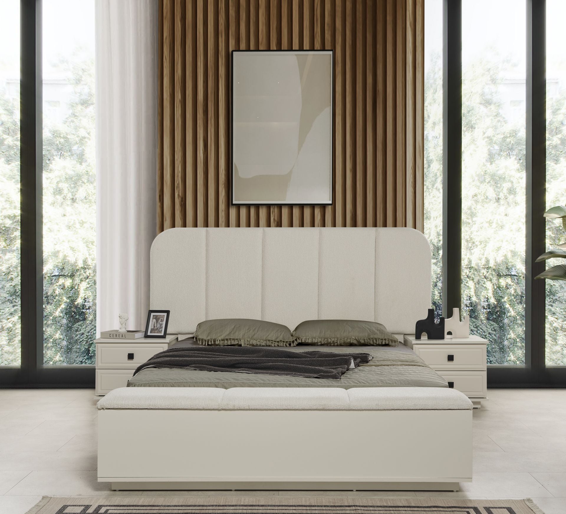 Karyola Sandıklı Bench Kumaş İçeriği Rüya Serisi V-Ekru Kumaş Kullanılmıştır. Yüksek Kaliteli, Yumuşak Ve Dayanıklı Kumaştır.