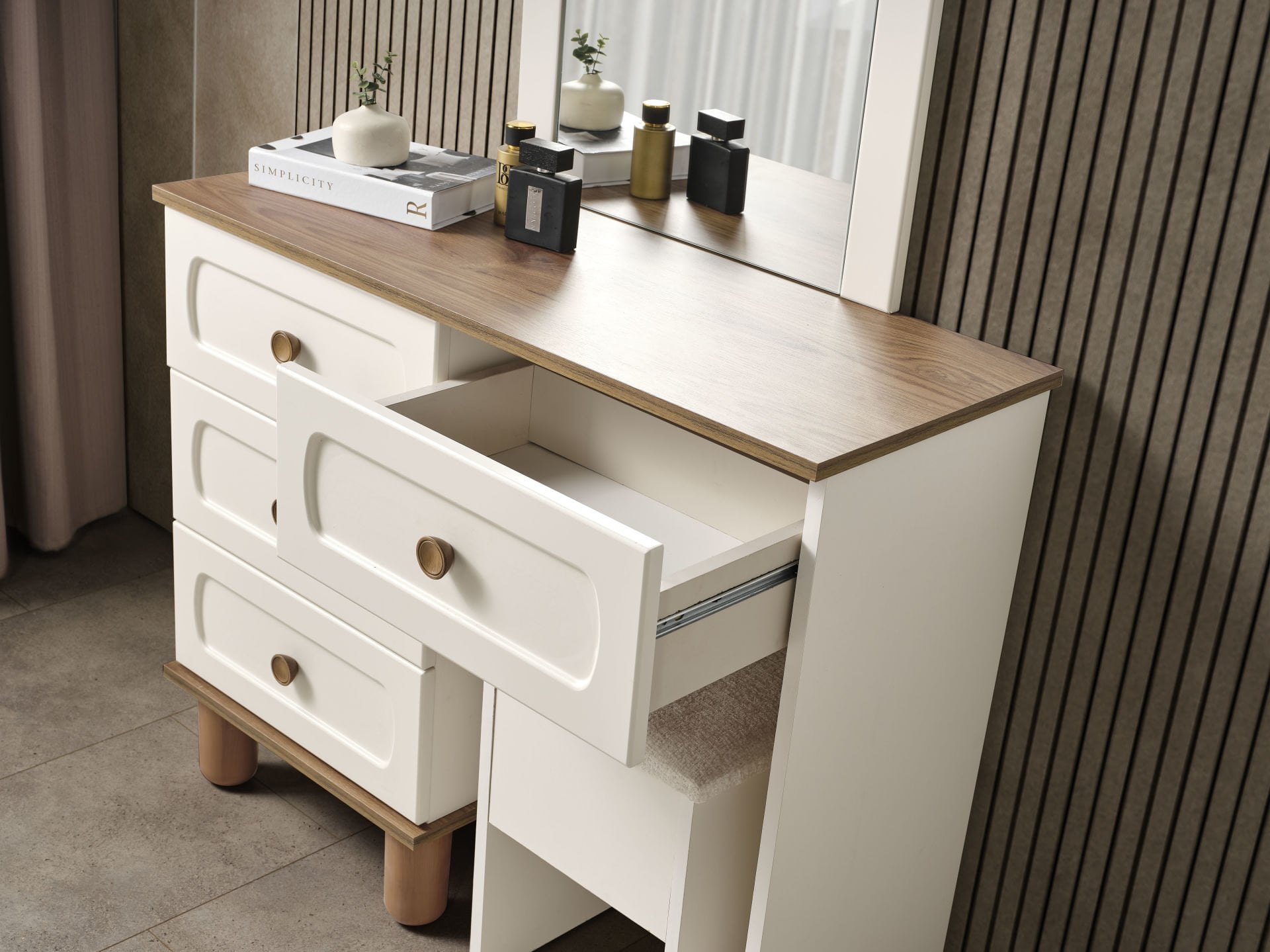 | Ürün İçeriği | 1 Adet Şifonyer Gövde, 1 Adet Şifonyer Ayna, 1 Adet Şifonyer Puf |