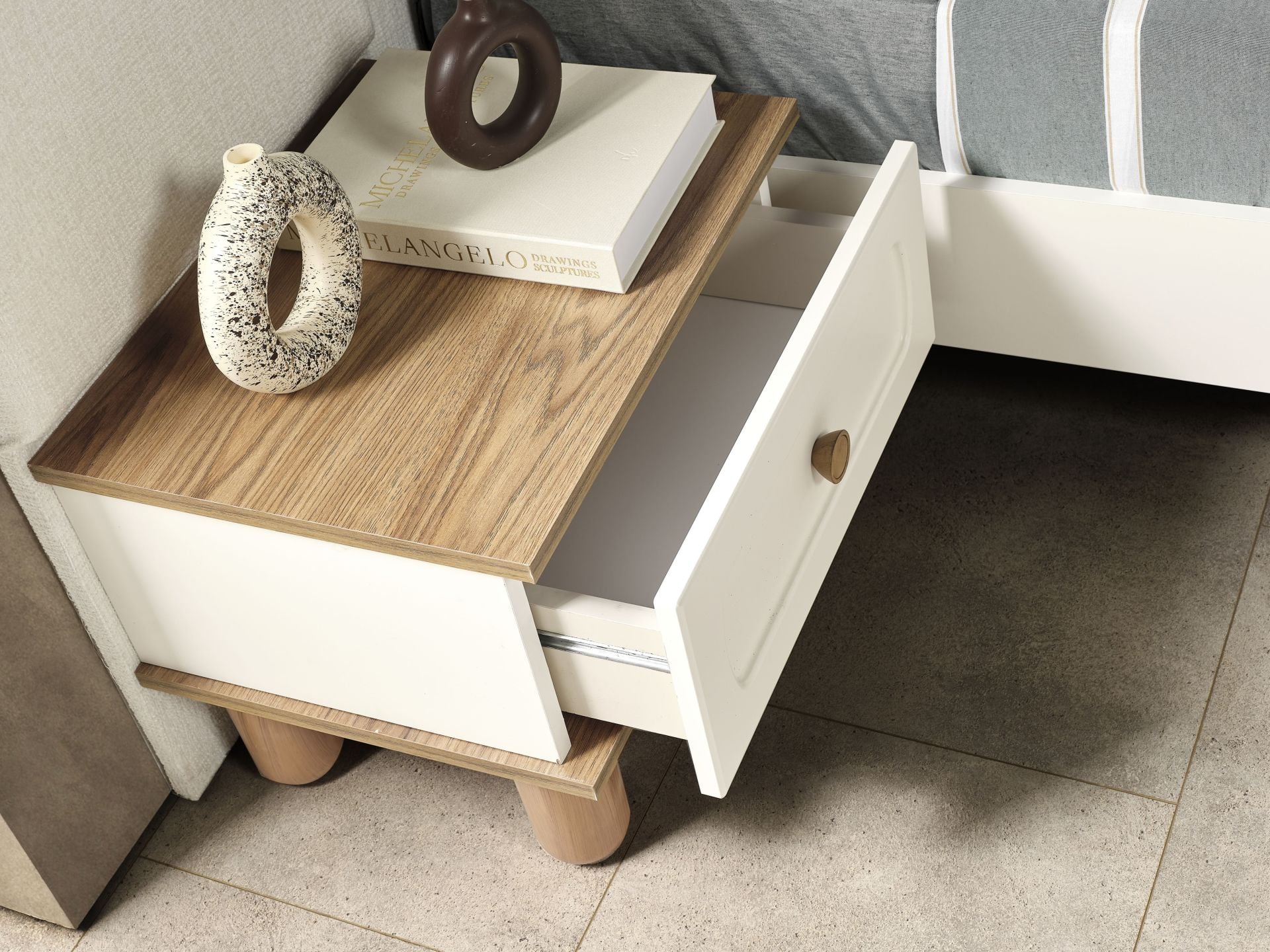 | Komodin Ayak Malzemesi | 1.Sınıf Kaliteli Fırınlanmış Gürgen Ağacı Kullanılmıştır. |