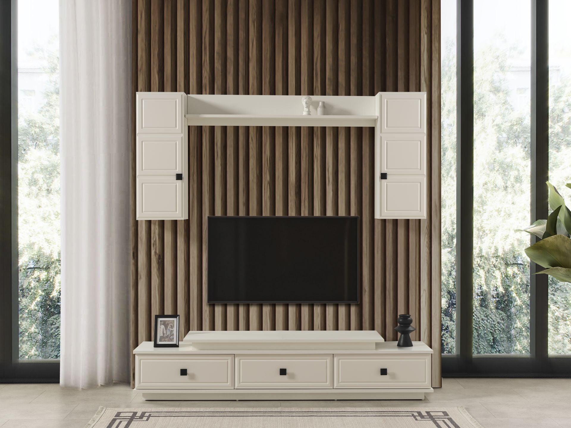 Ürün İçeriği  1 Adet TV Sehpa, 2 Adet TV Üst Blok, 1 Adet TV Üst Raf
