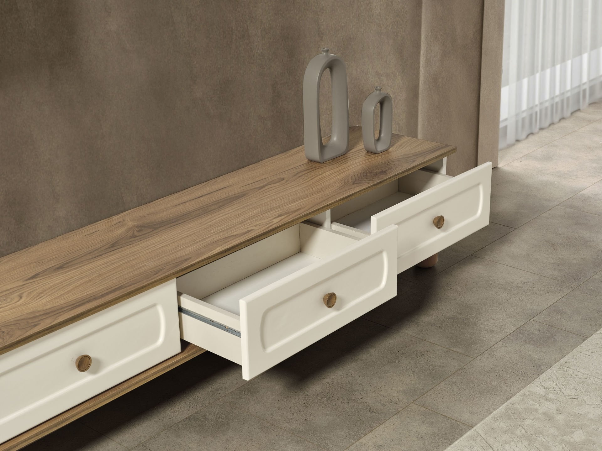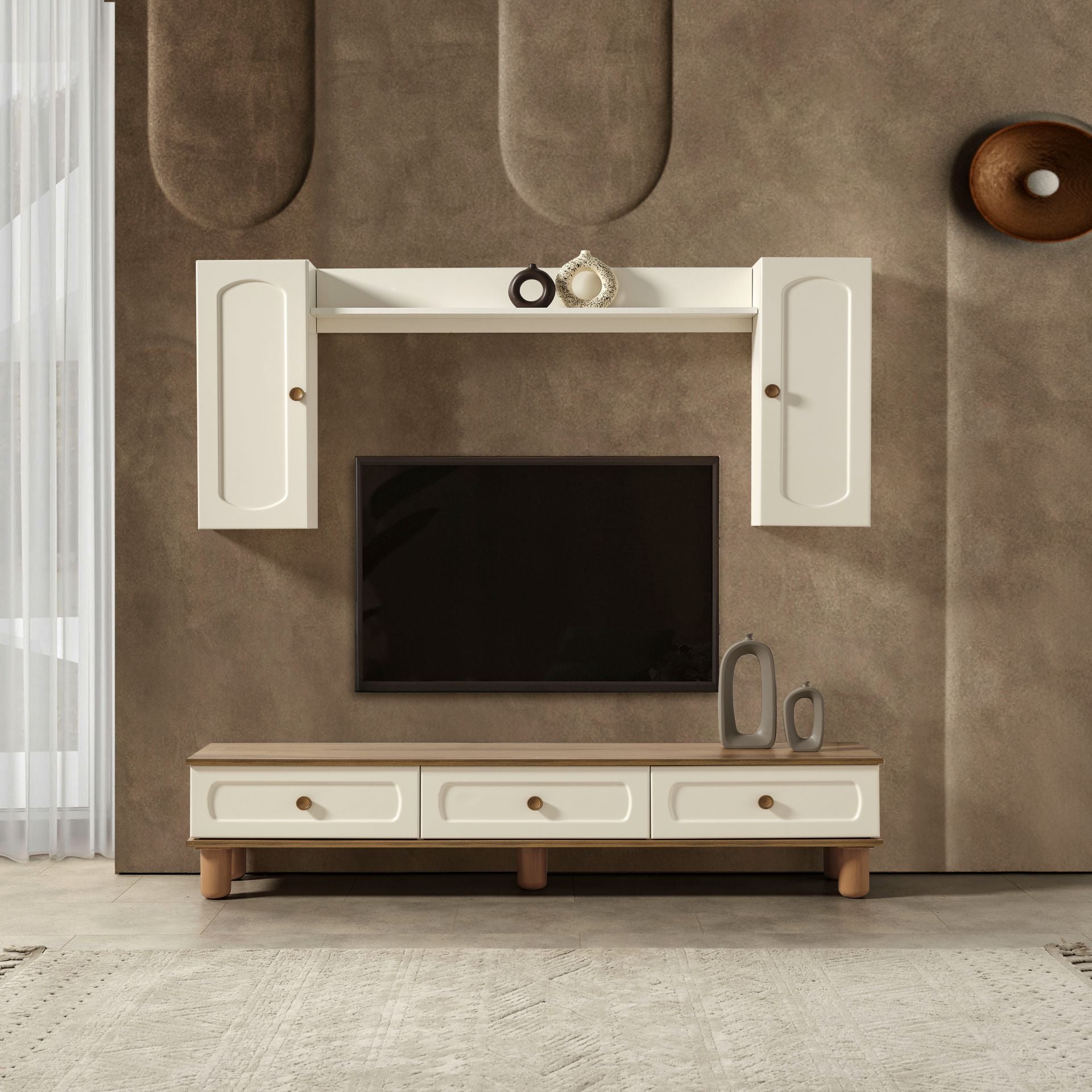 | TV Ünitesi Ayak Malzemesi | 1.Sınıf Fırınlanmış Gürgen Ağacı Kullanılmıştır. |