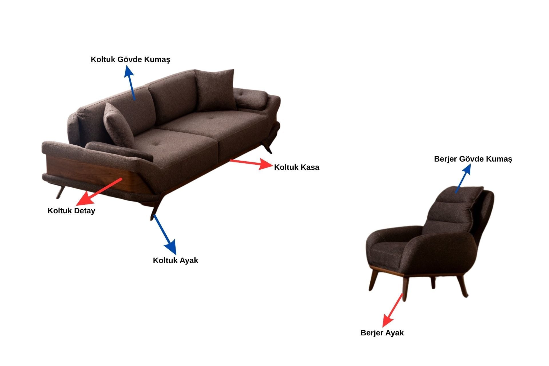 | Demonte Parçalar | Koltuk Ve Berjer Ayakları Demonte Gönderilmektedir. |