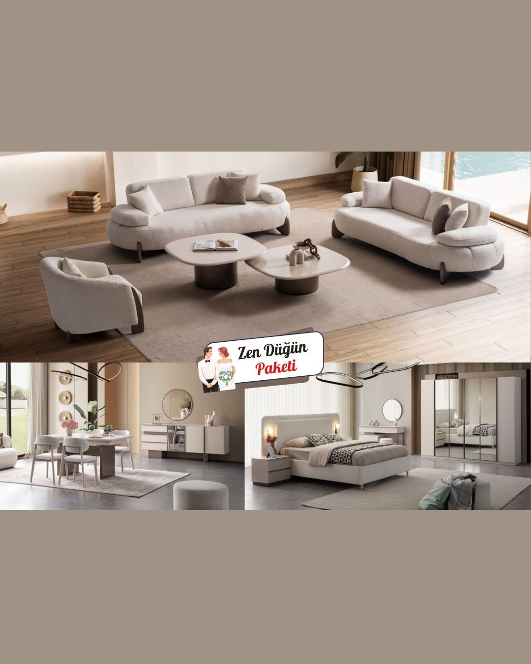 | Takım İçeriği | * Yatak Odası Takımı: 1 Adet 6 Kapaklı Gardırop, 1 Adet Şifonyer Gövde, 1 Adet Şifonyer Ayna, 1 Adet Şifonyer Puf, 2 Adet Komodin, 1 Adet Panolu Karyola, 1 Adet Kendinden Baza * Koltuk Takımı: 1 Adet Üçlü Koltuk, 1 Adet Berjer, 3 Adet Kare Kırlent, 1 Adet Dikdörtgen Kırlent * Yemek Odası Takımı: 1 Adet Konsol Gövde, 1 Adet Konsol Ayna, 1 Adet Açılır Masa, 4 Adet Sandalye |