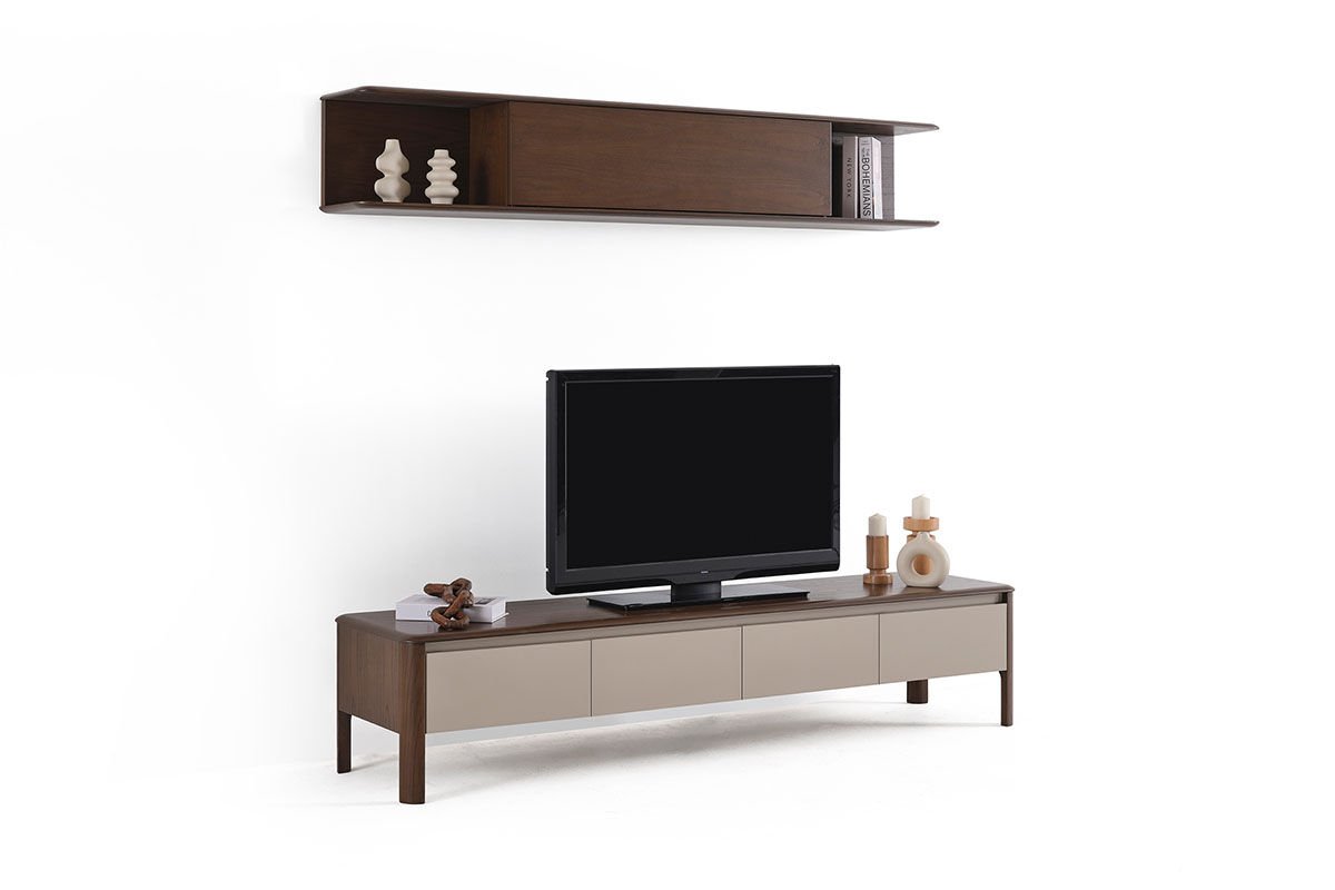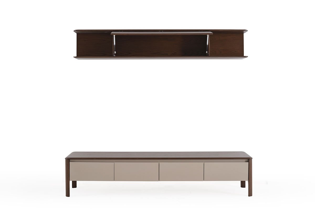 Arona, yalınlığın zarafetle buluştuğu güçlü bir tasarım diline sahiptir. Net çizgileri ve dengeli oranlarıyla mekânda sakin bir etki yaratırken, sağlam yapısıyla kendinden emin bir duruş sergiler. Soft renk paleti ve doğal dokuları, ferah ve zamansız bir atmosfer oluşturur. Gereksiz detaylardan arındırılmış formu sayesinde Arona, bulunduğu alanı yormadan tamamlar. Modern yaşamın sadelik, denge ve estetik beklentilerine uyum sağlayan Arona, incelikli ama güçlü bir karakter sunar.Ürün Tanımı: Arona Tv ÜnitesiÜrün Malzemesi: Tv Üst Blok Macchiato Ceviz Kaplama olup, Tv Alt Bloğun üst ve yan kısımları Macchiato Ceviz Kaplama, ön kapak tablası ise Cappuccino Parlak Lake malzemeden üretilmiştir. Bakım: Kolay çıkabilen lekeler için sabunlu su kullanılmalı, temizlerken kimyasal madde tercih edilmemelidir. Alt Blok: Genişlik: 210 cm Derinlik: 28 cm Yükseklik: 34 cm Alt Blok: Genişlik: 210 cm Derinlik: 51 cm Yükseklik: 44 cm