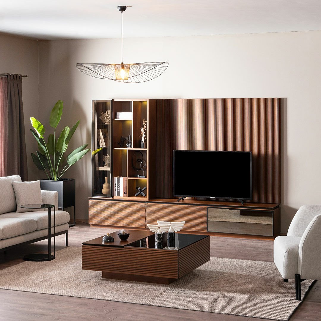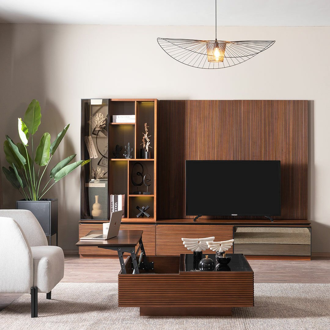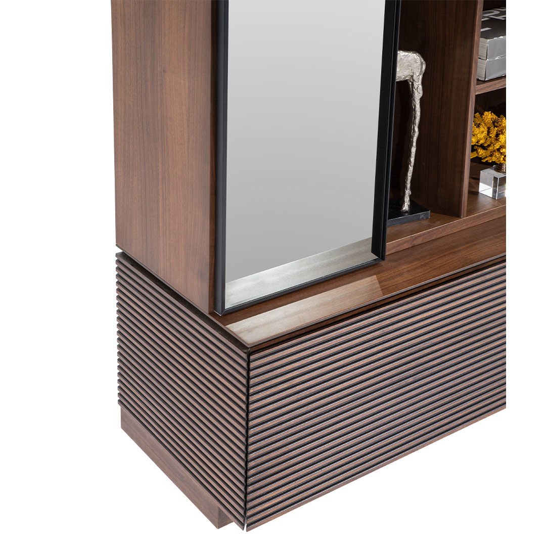 Biscotti, cevizin zamansızlığını metalin zerafeti ile harmanlayarak çağdaş bir yaşam alanı düşleyenler için tasarlandı. Güçlü işçiliği ve dokusu ile evlerinizde fark yaratmayı amaçlayan Biscotti Tv Ünitesi, sıcak ve samimi bir ambiyansın yanı sıra füme cam ve metal detayları ile şıklığı ve ışıltıyı evlerinize taşıyor.