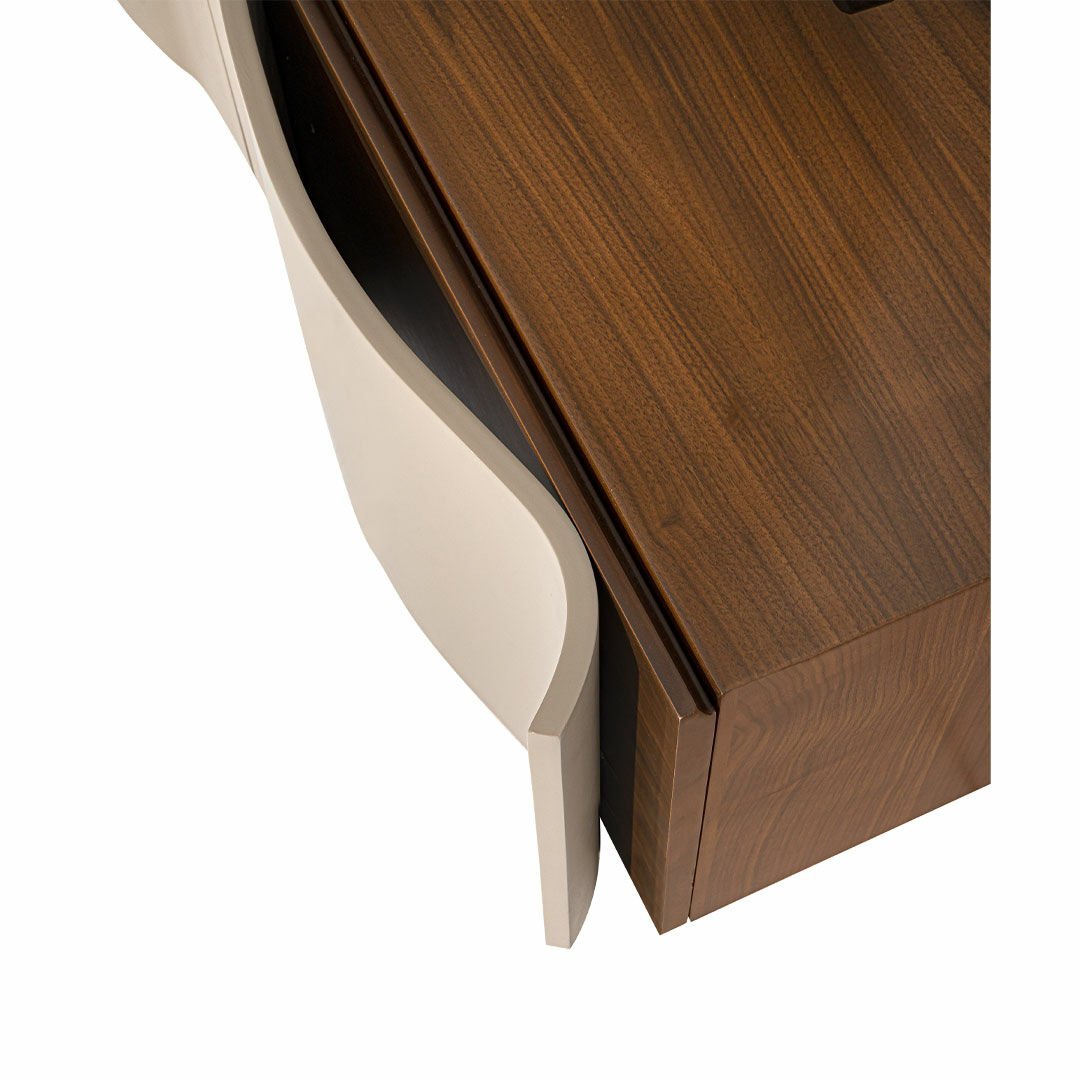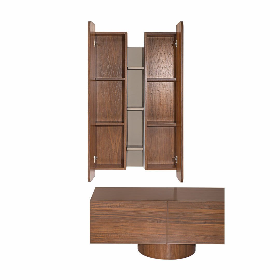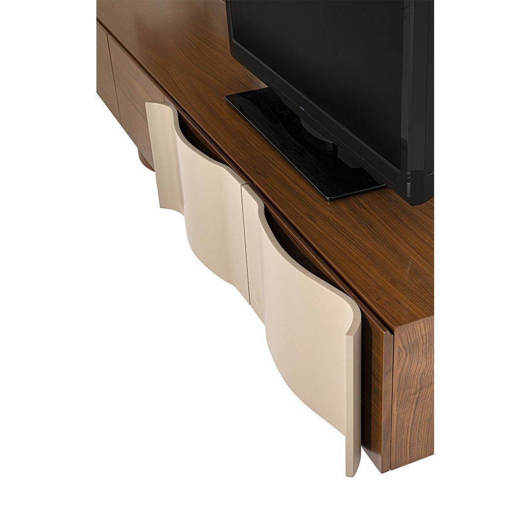 Espresso koleksiyonu modernist eğrileri ve kıvrımlı hatlarıyla yaşam alanlarında samimi bir atmosfer oluşturmayı amaçlıyor. Doğal hareli ceviz kaplamadaki hareketlilik gri lake yüzeyler ile uyumlu bir birliktelik sergiliyor. Ürün Tanımı: Espresso Tv Ünitesi.   Ürün Malzemesi: Doğal hareli amerikan ceviz kaplama ve vizon ipek mat lake malzemeden üretilmiştir.    Bakım: Ilık sabunlu su yardımıyla temizlenebilmektedir.   Genişlik: 243 cm    Derinlik: 54 cm    Yükseklik: 171 cm