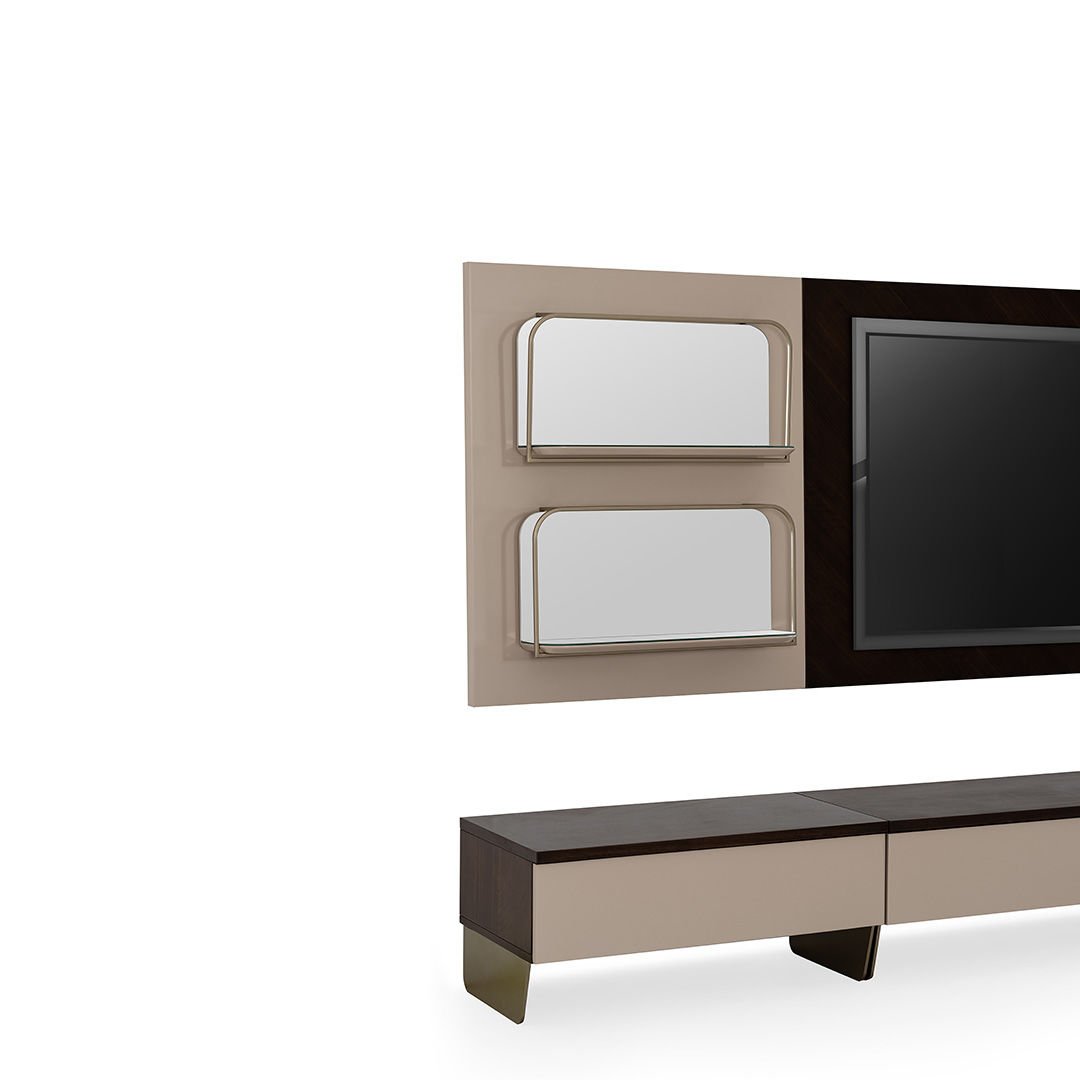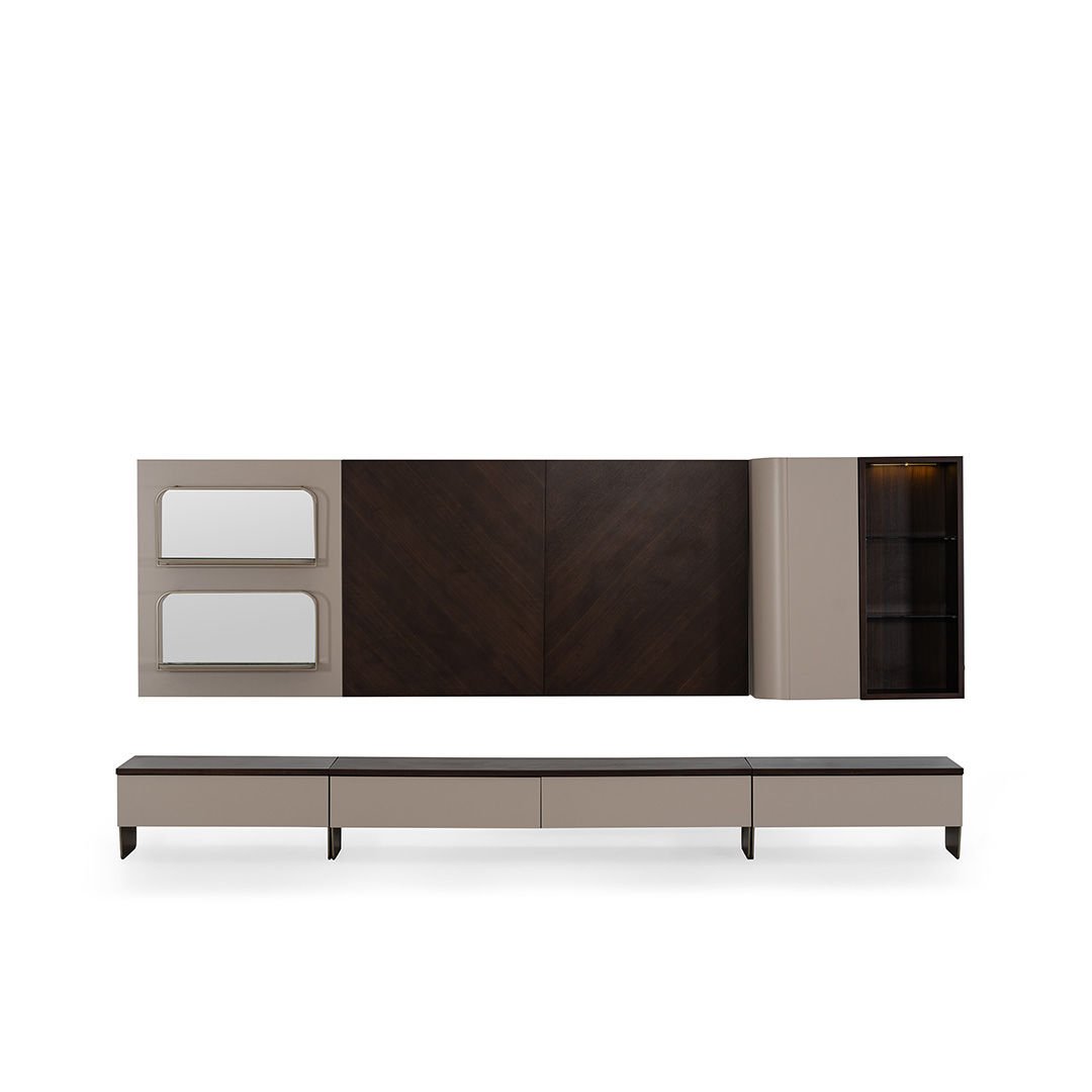 Ceviz kaplamanın zamansızlığını pastel lake tonu füme cam,amber ışık ve metalik detaylar ile buluşturan Tawny Koleksiyonu nitelikli tasarımı ve lüks tarzıyla öne çıkıyor.Freze kaplamadaki yön hareketleri ve çizgisel kıvrımları ile modern lüks tarzını yaşam alanlarına yansıtıyor. Koleksiyonda bulunan opsiyonel parçalar kullanıcısına alışılmışın dışında ve ihtiyaca göre seçenekler sunuyor.Ürün Tanımı: Tawny Tv Ünitesi.Ürün Malzemesi: Doğal freze amerikan ceviz kaplama kullanılmış olup metal kısımlarda kum beji elektrostatik boyalı metalden yararlanılmıştır.Bakım: Ilık sabunlu su yardımıyla temizlenebilmektedir.Genişlik: 360 cmDerinlik: 47 cmYükseklik: 168 cm