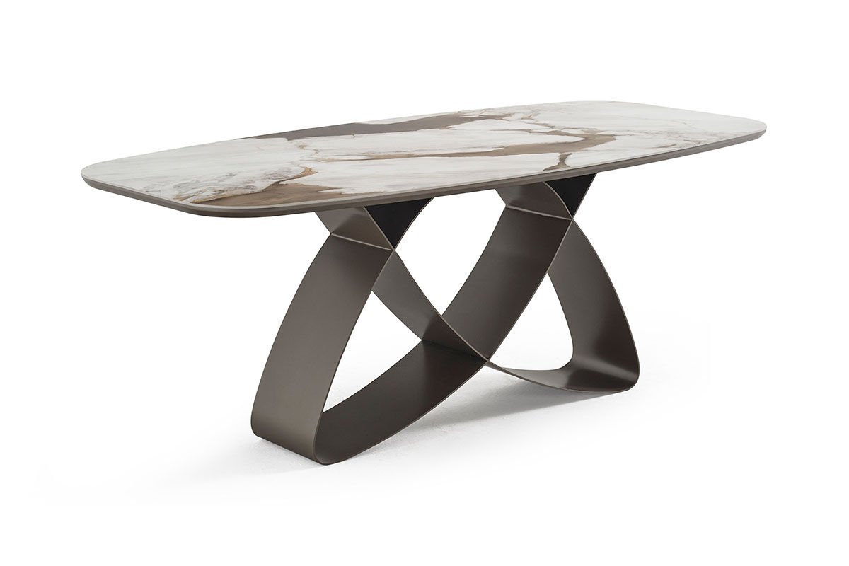 Alya, zarafetiyle yüzyıllardır ilham veren lale motifinden doğan çağdaş bir tasarım yorumudur. Bu koleksiyonda lale, doğrudan bir süsleme olarak değil; formun özü ve ritmi olarak ele alınır. Yemek masasının metal ayağında, lalenin incelen gövdesini çağrıştıran akışkan bir form dili hissedilir. İnce kıvrımlar ve dengeli oranlar, metalin gücünü zarafetle buluşturur; masa, mekânda heykelsi bir duruş kazanır. Konsol ve TV sehpasında ise bu akışkan ifade daha yatay bir kompozisyona dönüşür. Yüzeylerdeki ritim ve taşıyıcı detaylar, lalenin simetrisini ve ölçülü estetiğini yansıtır. Sessiz bir lüks anlayışıyla tasarlanan Alya, zamana karşı direnerek mekâna kalıcı bir değer katar.Ürün Tanımı: Alya MasaÜrün Malzemesi: Masanın üst tablası Gemma Bronze Porselen olup ayakları ise Antik Elektrostatik Boyalı Metal malzemeden üretilmiştir.Bakım: Kolay çıkabilen lekeler için sabunlu su kullanılmalı, temizlerken kimyasal madde tercih edilmemelidir.