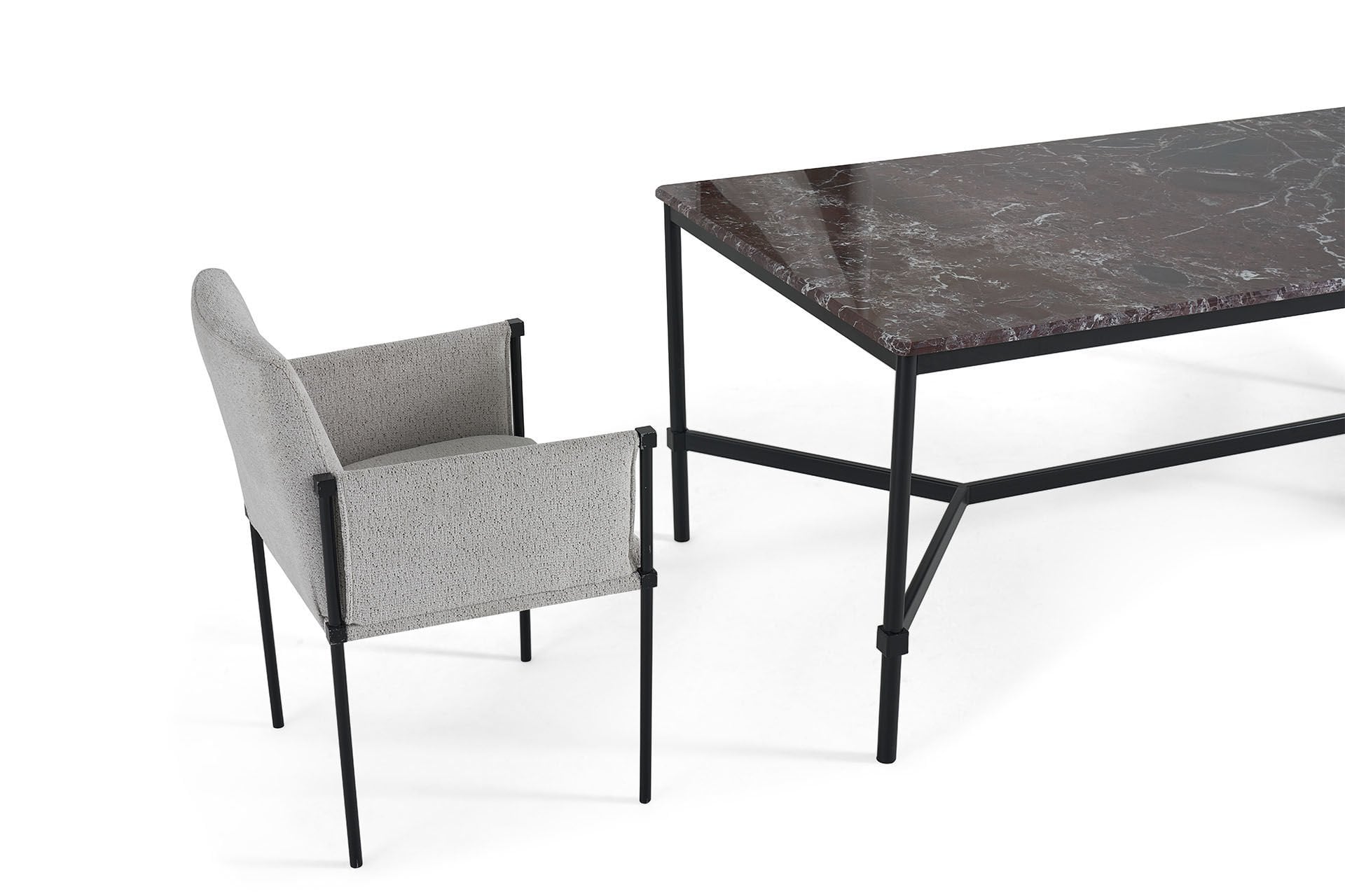 Mardin, her detayıyla tarih, zarafet ve yaşam izleri taşıyan bir şehir. Kapıları, sadece geçiş noktaları değil; geçmişin, zamanın ve şehrin kimliğinin birer simgesidir. Her kapının farklı geometrisi ve dokusu, Mardin’in çeşitliliğini ve bir arada yaşama kültürünü yansıtır. Marzen Koleksiyonu, bu kapıların ve şehrin gizeminden ilhamla tasarlandı. Dar sokaklardaki pencere mazgalları metal ayakların formuna, bereketin simgesi nar taneleri ise toprağın sıcak renk tonlarına dönüştü. Her parça, Mardin’in zengin tarihini ve kültürünü yaşam alanlarına taşır.Ürün Tanımı: Marzen Masa (Elazığ Vişne Mermer)Ürün Malzemesi: Üst tablası Elazığ vişne mermer olup ayakları ise mat siyah elektrostatik boyalı metal malzemeden üretilmiştir.Bakım: Kolay çıkabilen lekeler için sabunlu su kullanılmalı, temizlerken kimyasal madde tercih edilmemelidir. Genişlik: 200 cm Derinlik: 100 cm Yükseklik: 75 cm